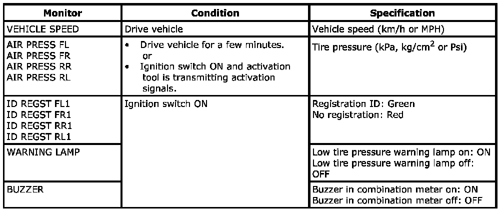 SDT Function: Air Pressure Monitor - Display Item List: