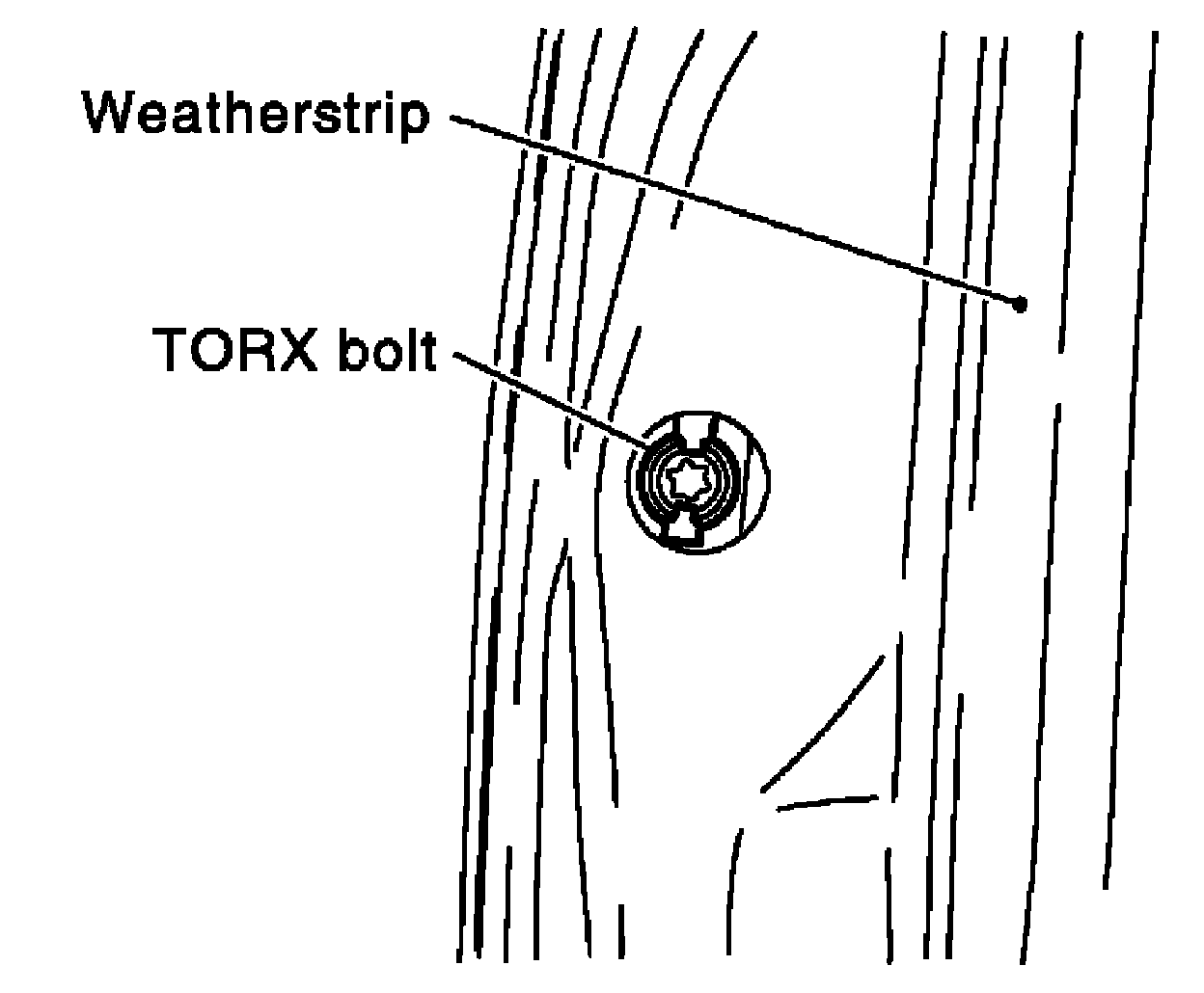 2. Remove door side grommet, and remove door key cylinder assembly (driver side) or outside handle escutcheon (passenger side) bolts (TORX T30) from grommet hole.