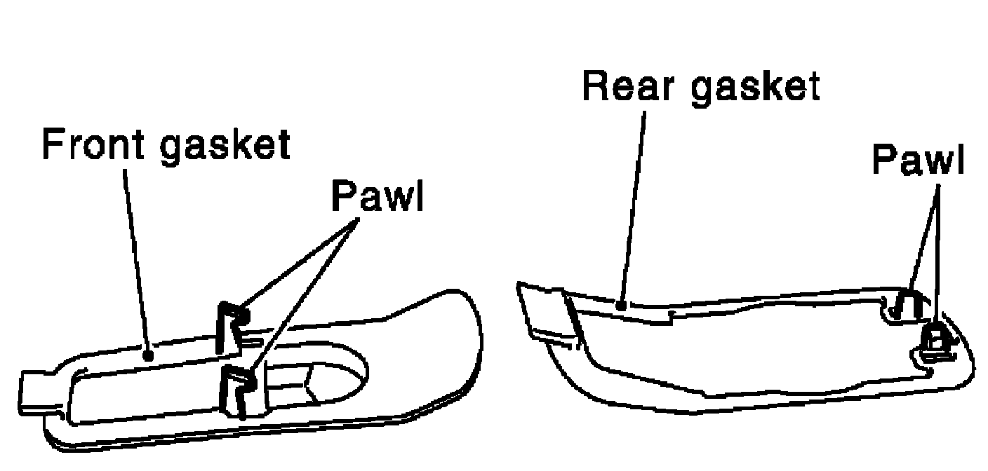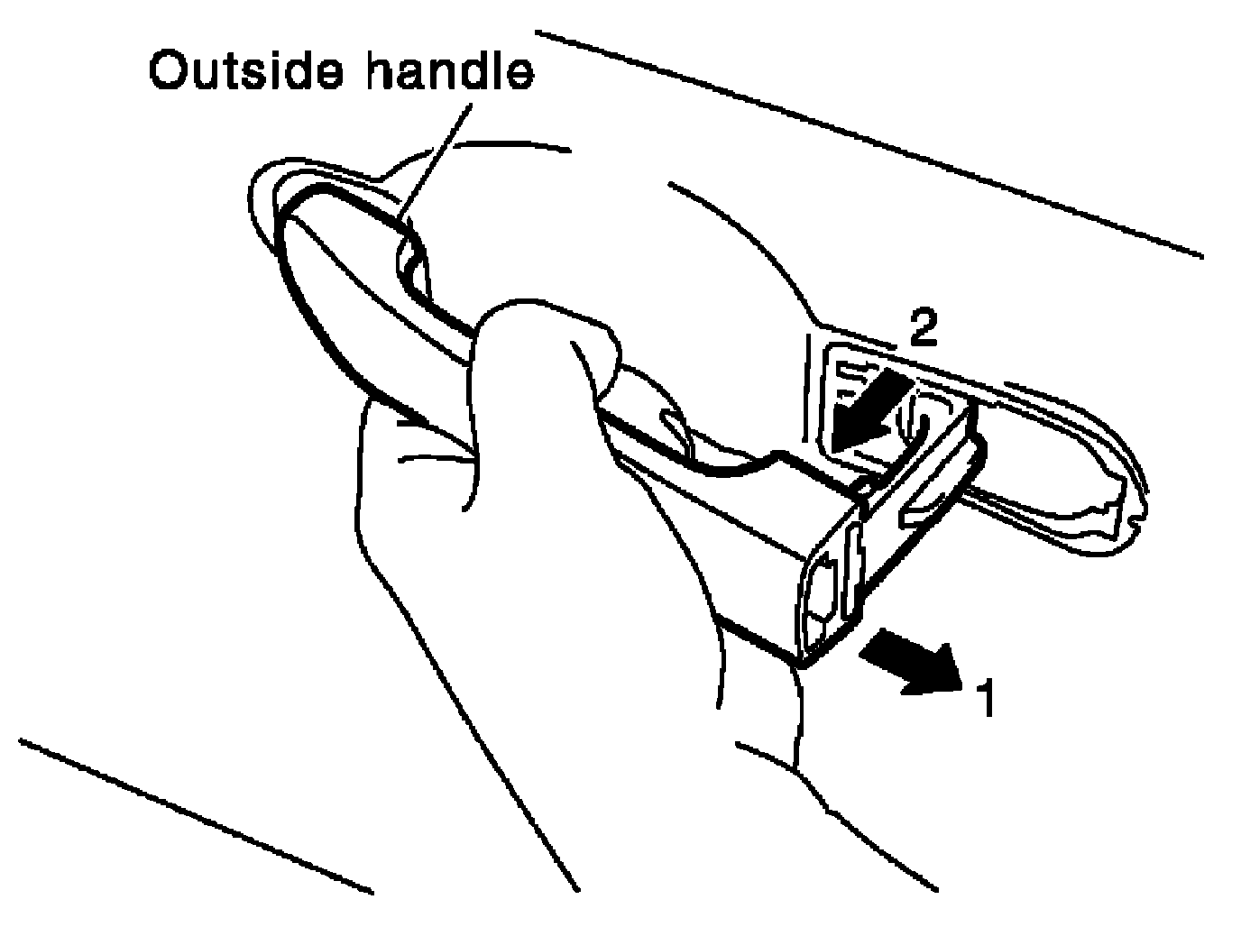 5. While pulling outside handle (2), slide toward rear of vehicle to remove outside handle (1).