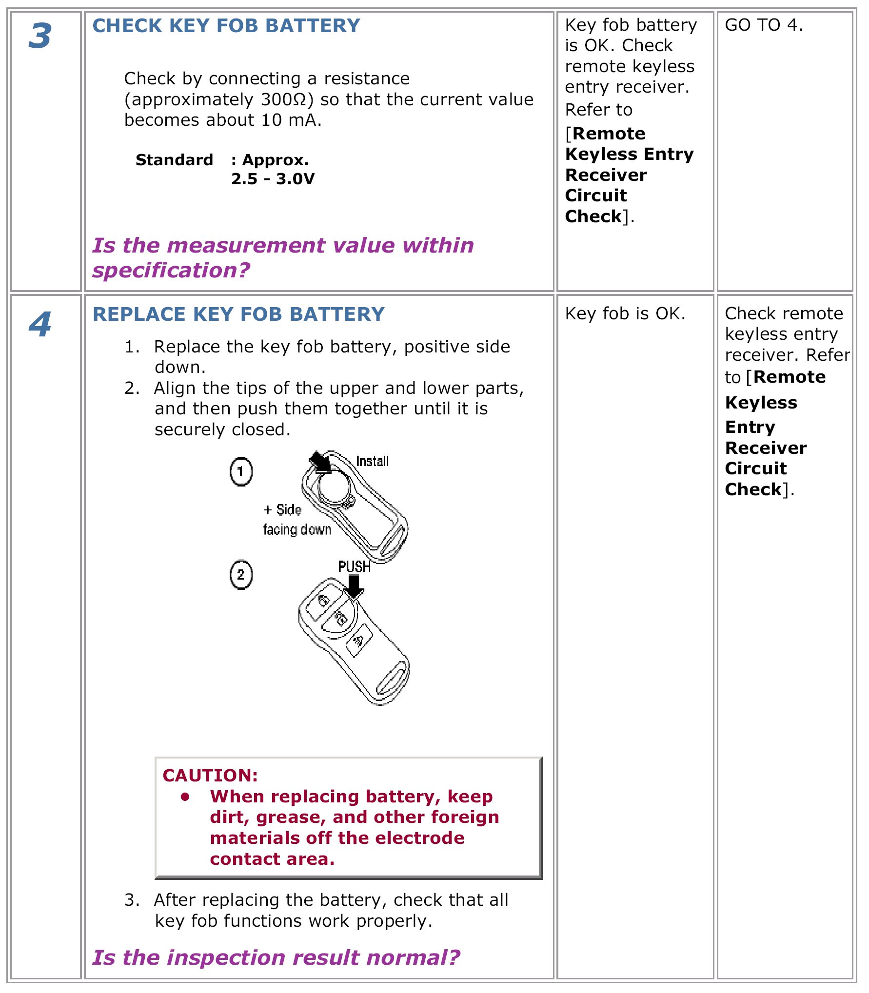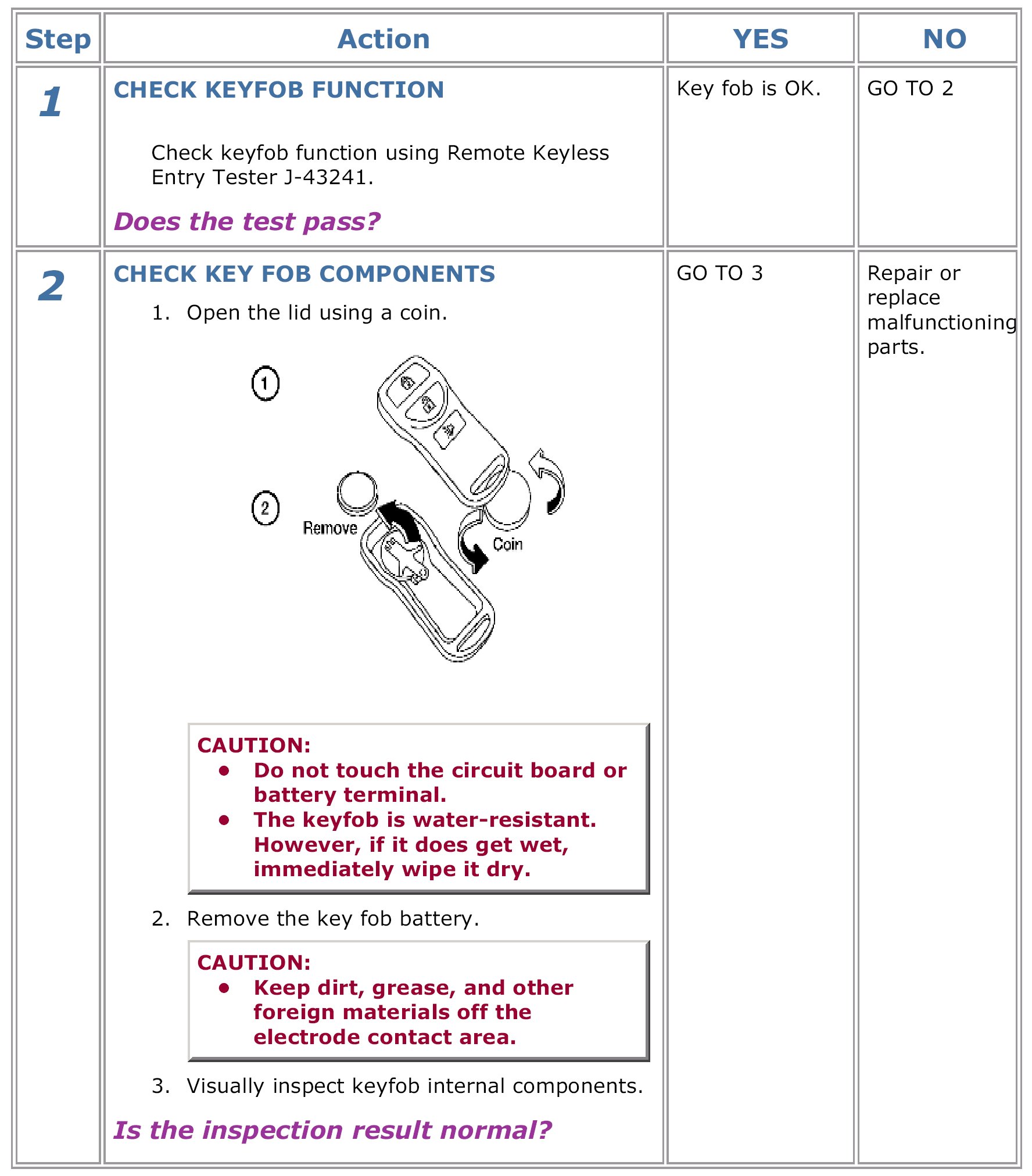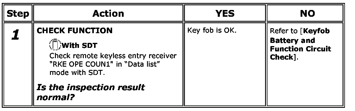 Keyfob Battery And Function Circuit CheckDescription
