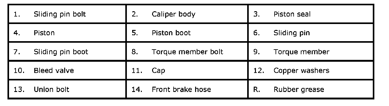 Front Brake Caliper: Exploded View [On-Vehicle Repair]