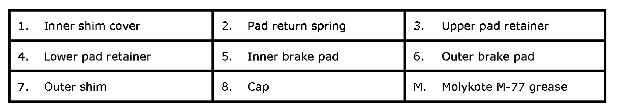 Front Brake Pad: Exploded ViewFront Brake Pads, Shims and Retainers