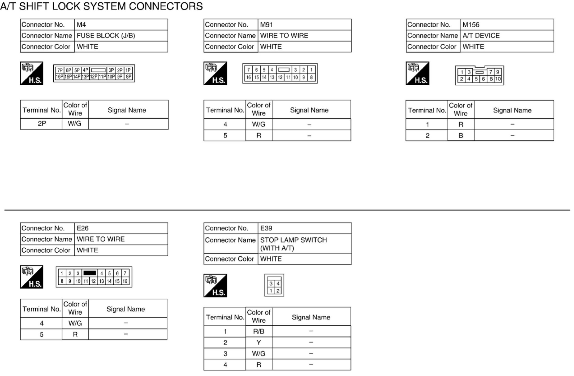 A/T Shift Lock System Connectors: