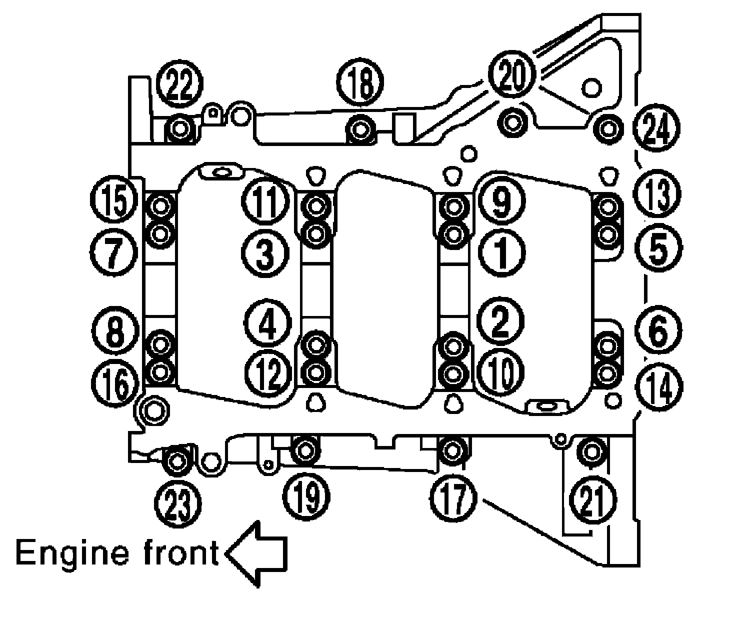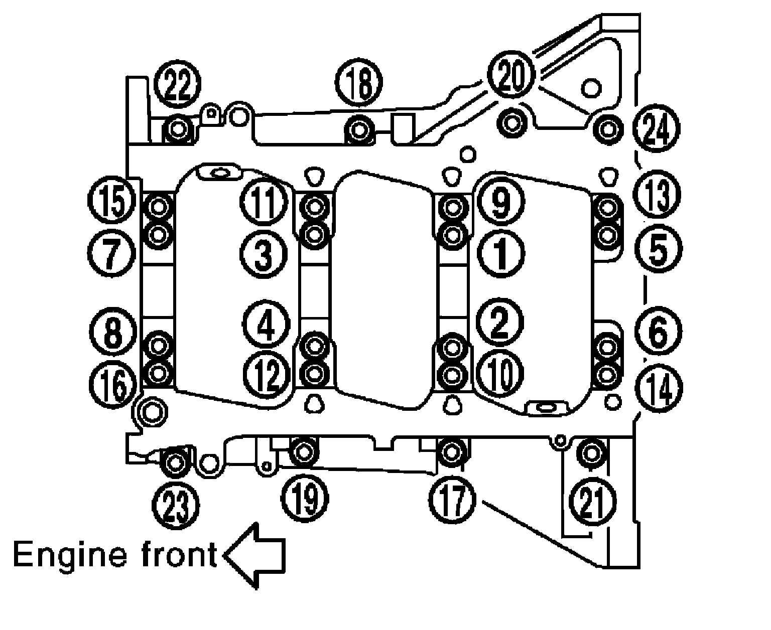 Tighten M8 bolts in numerical order as shown from No. 17 to 24.