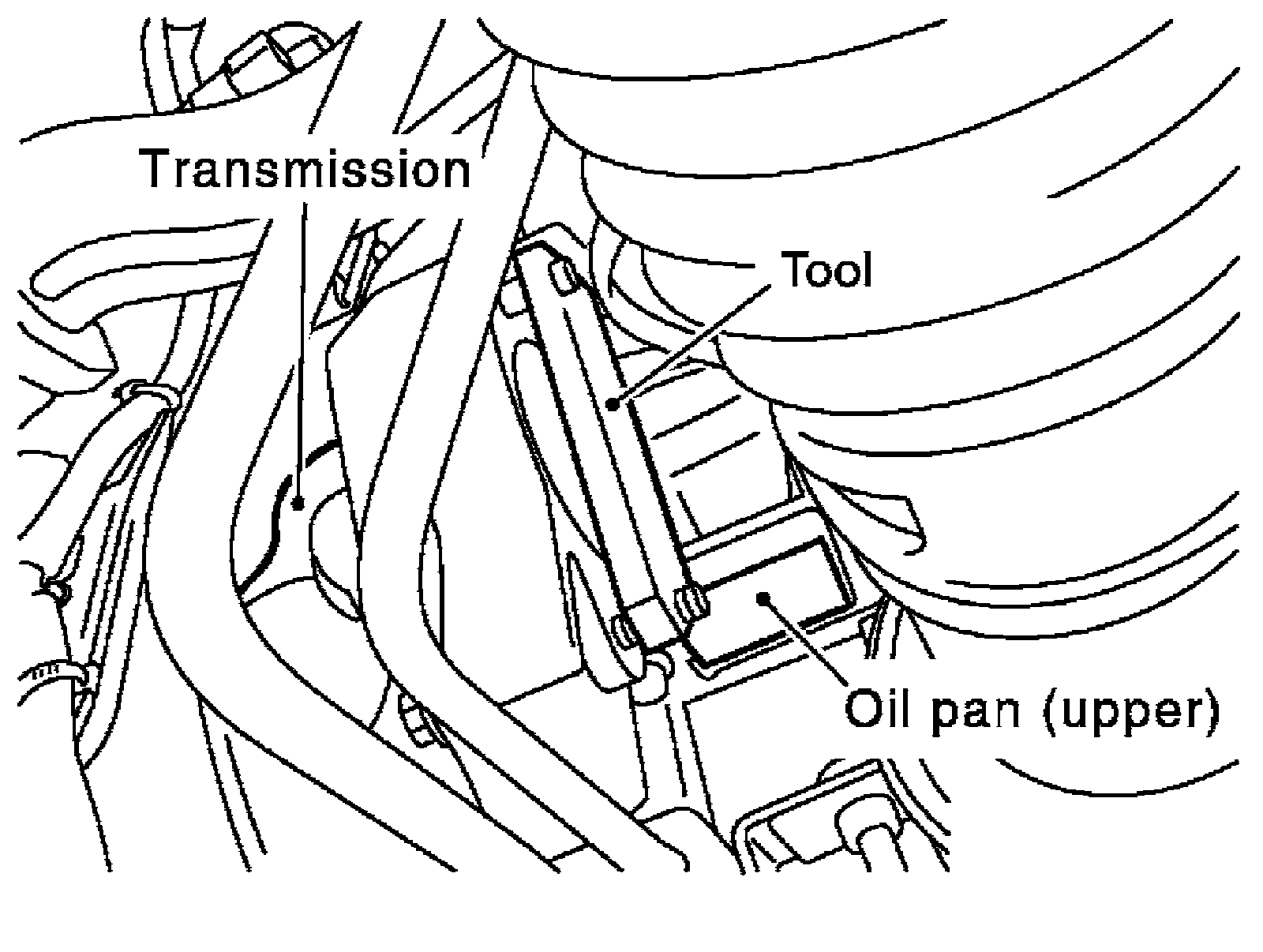 17) Loosen two bolts in front of oil pan (upper) in reverse order as shown.