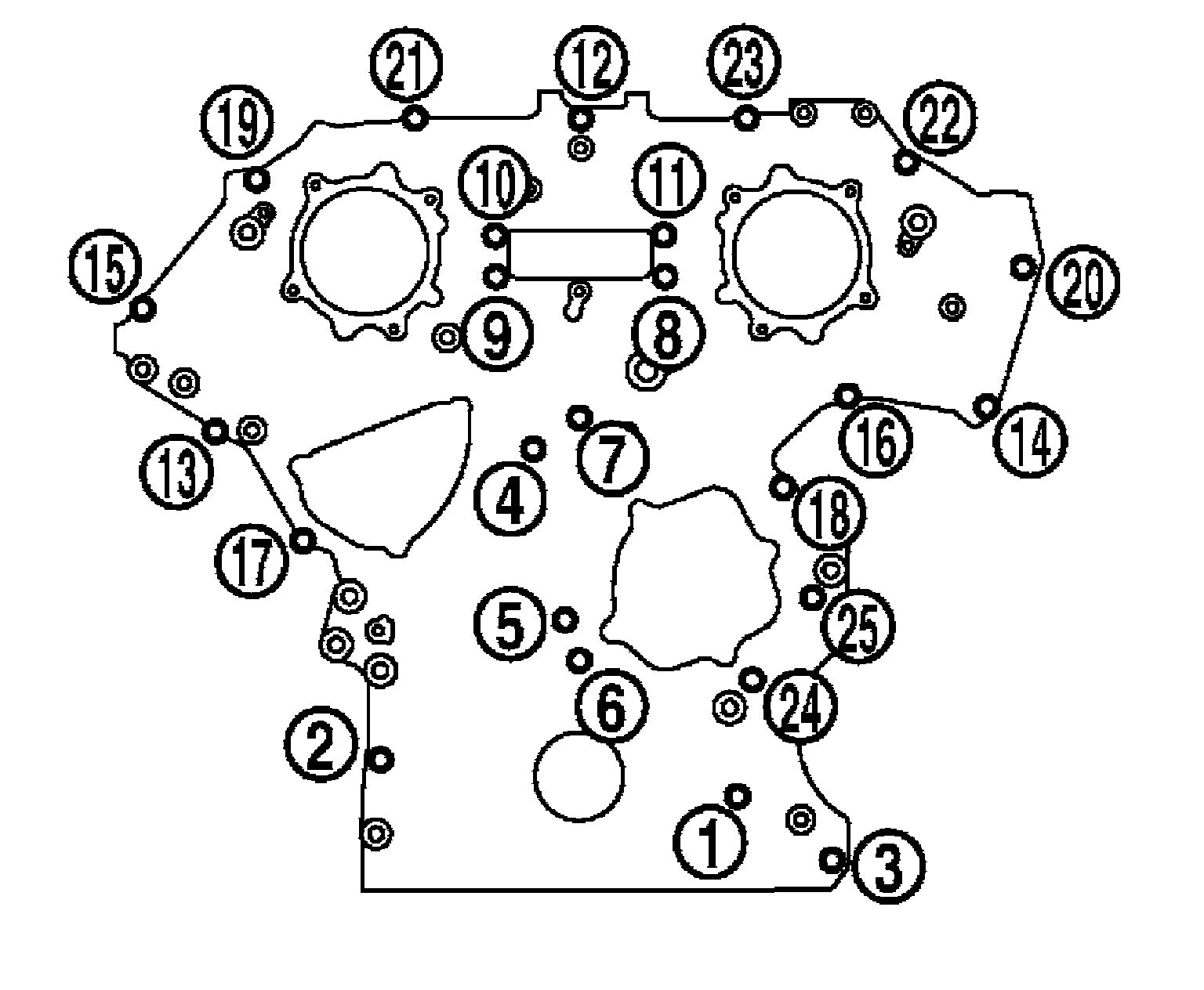 e) After all bolts tightened, retighten them to the specified torque in numerical order as shown.