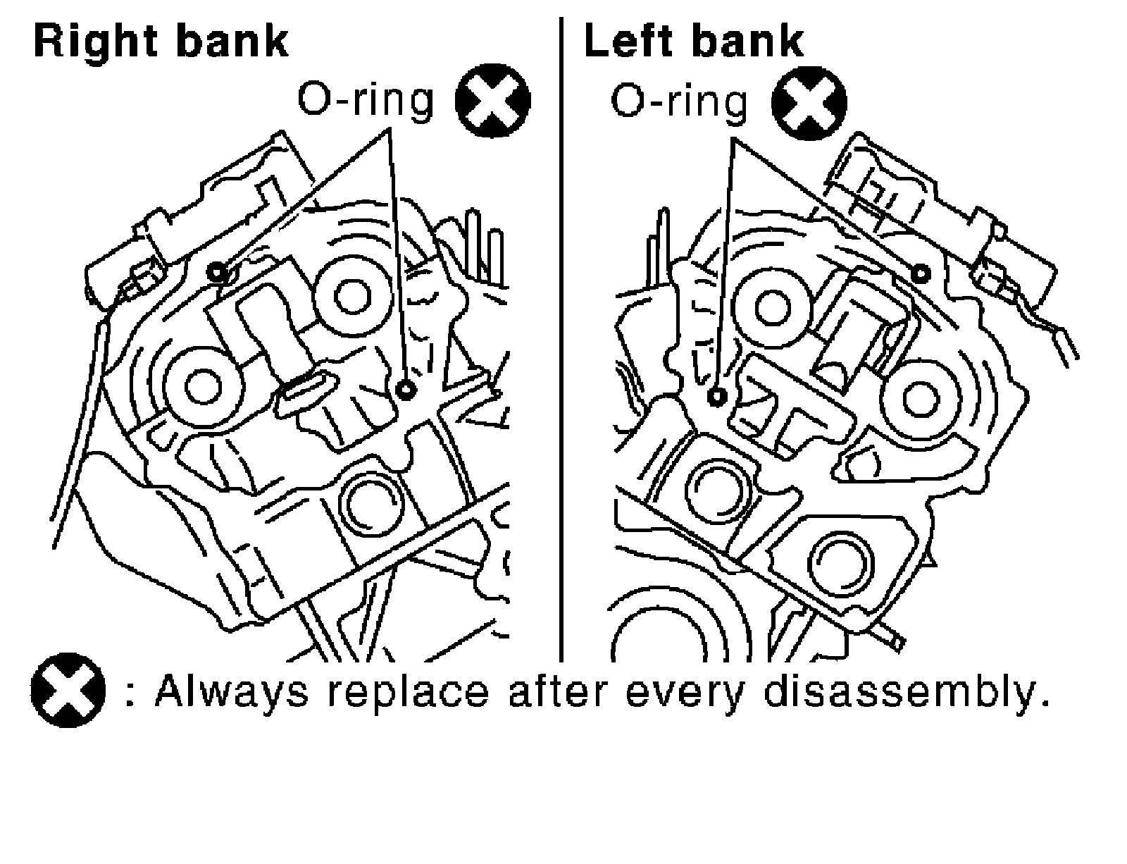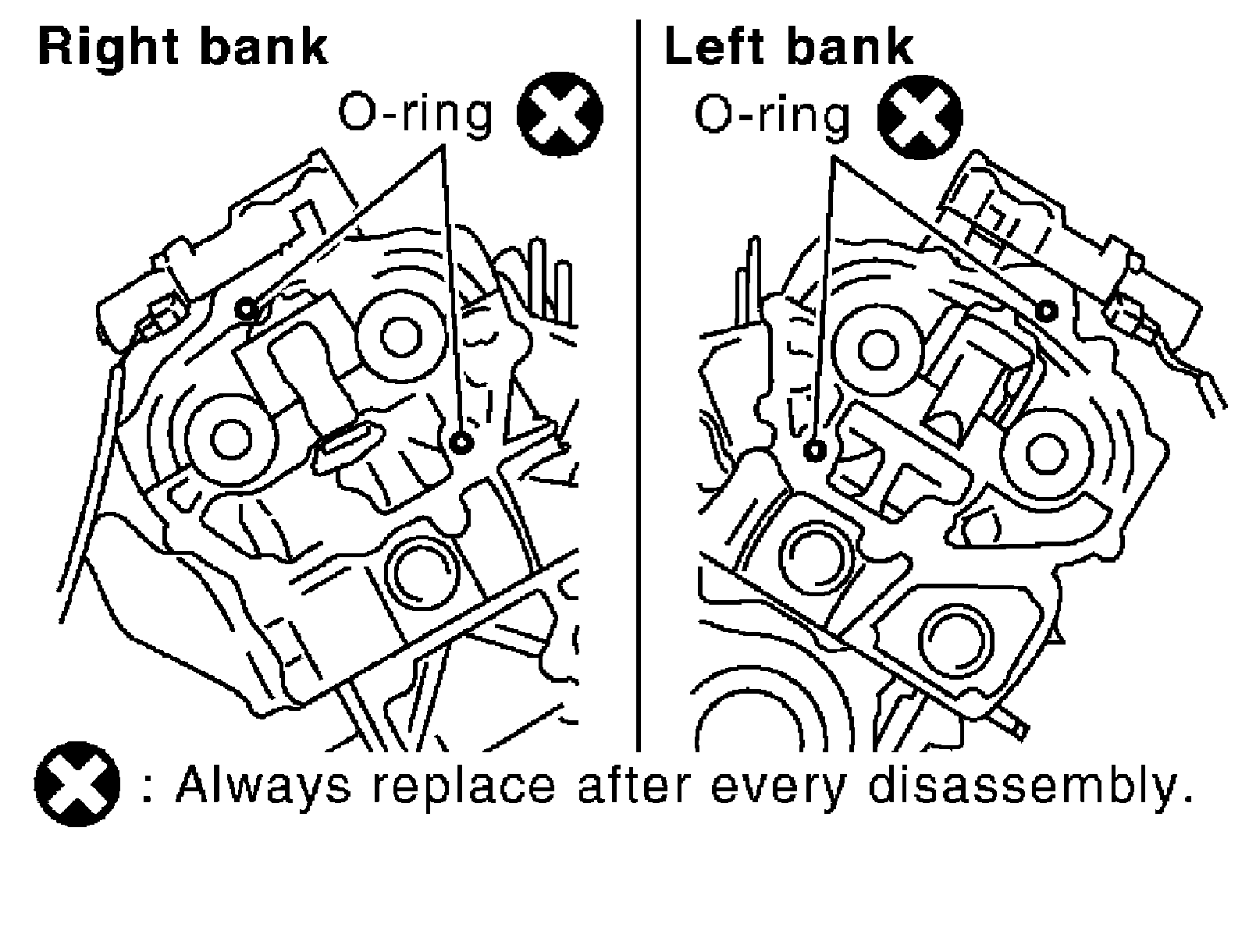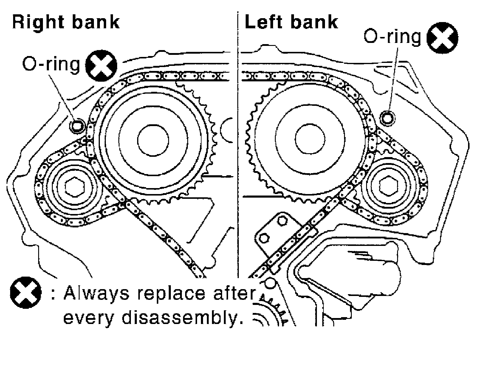 13) Remove collared O-rings from front timing chain case (left and right side).