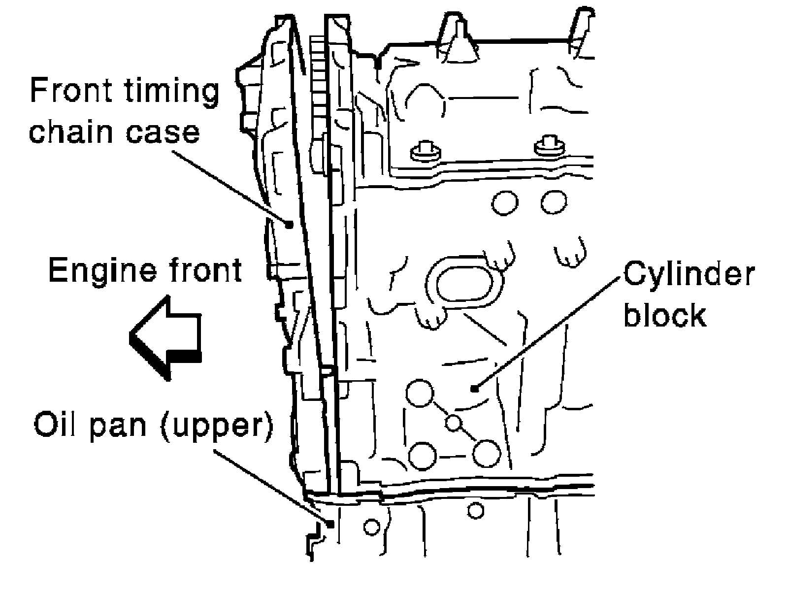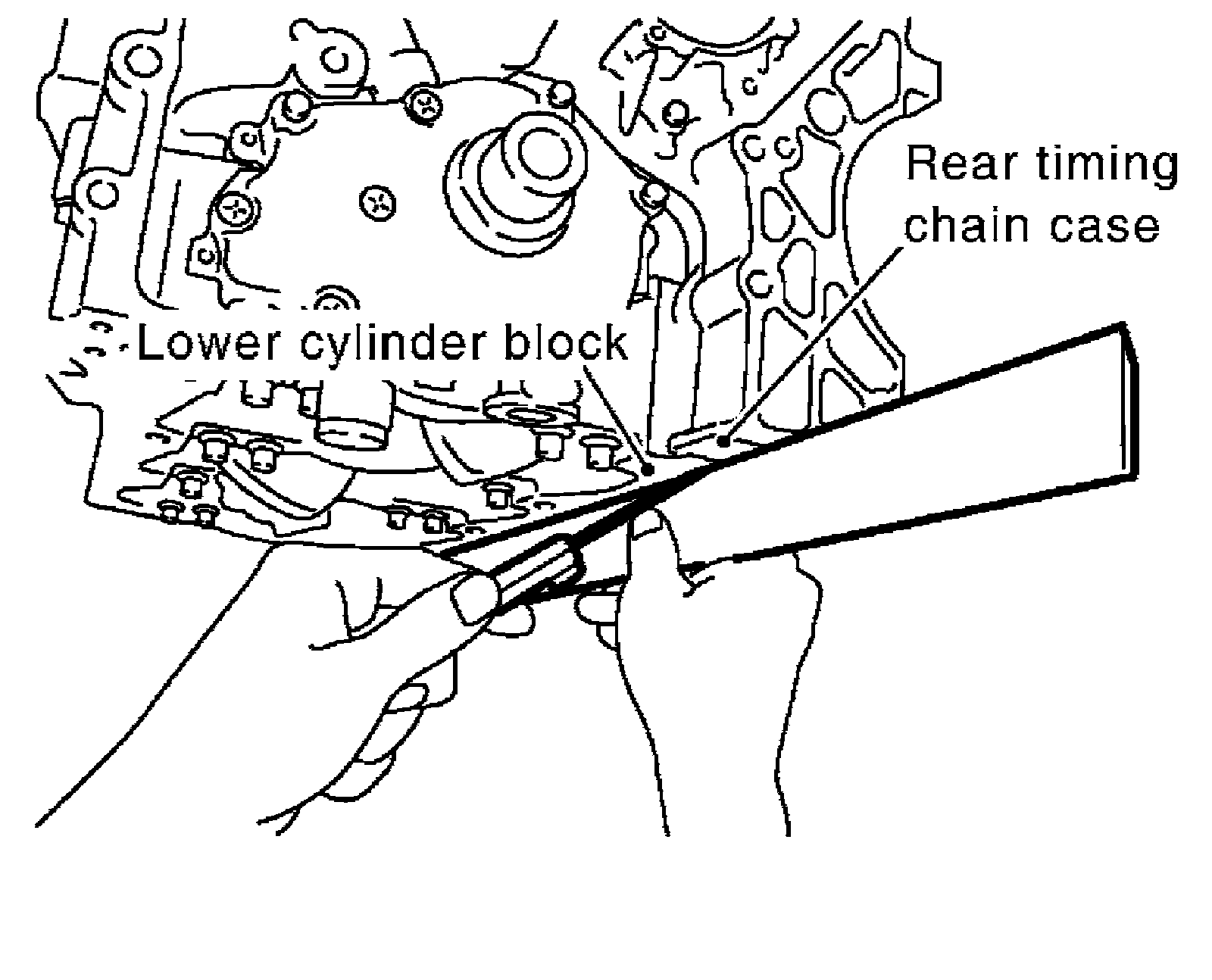 Rear timing chain case to lower cylinder block: