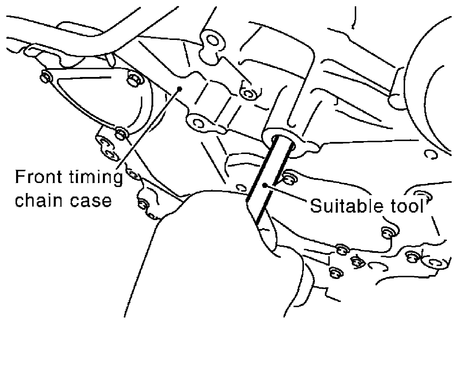 Be careful not to damage front timing chain case.