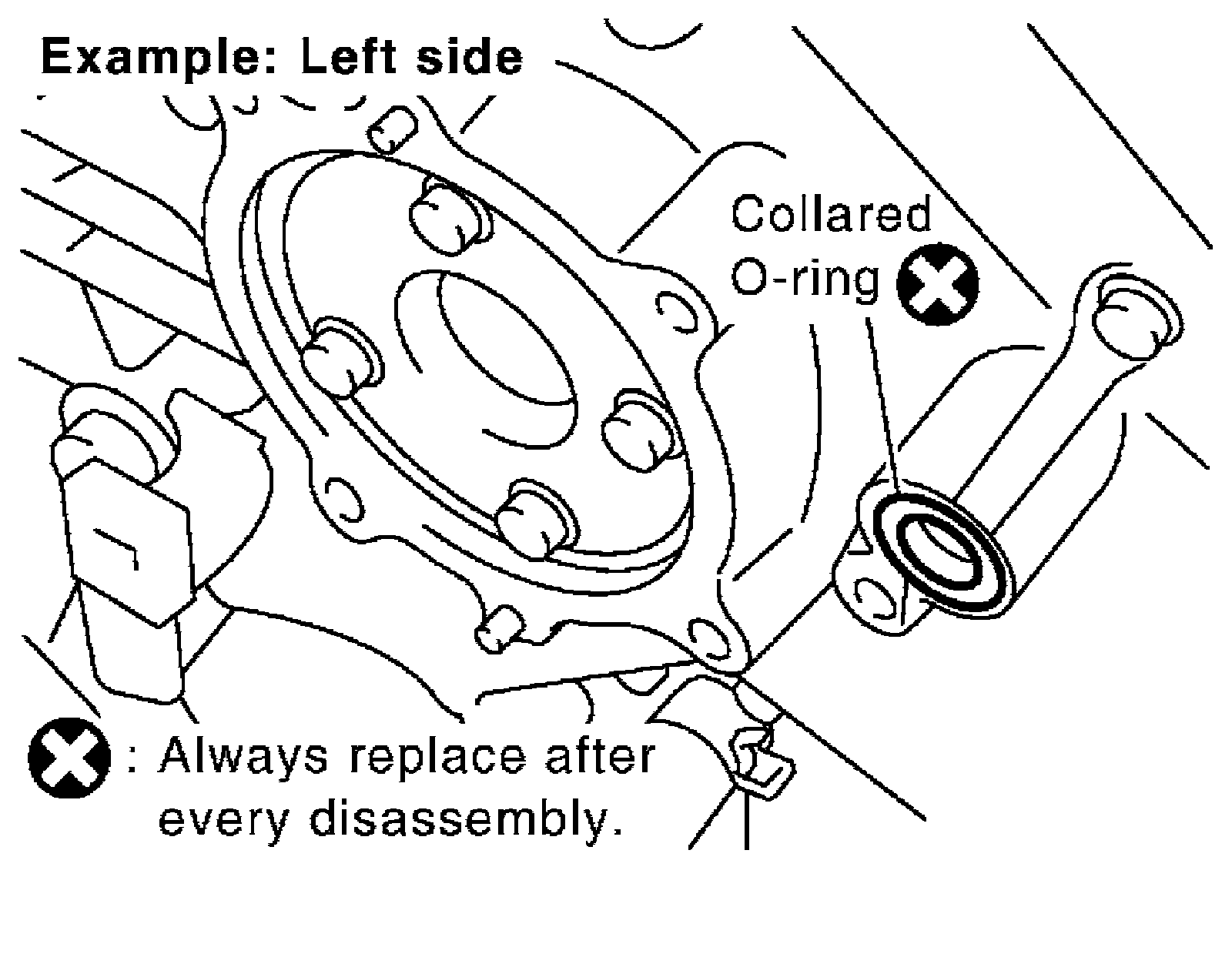 c) Install new collared O-rings in front timing chain case oil hole (left and right sides).