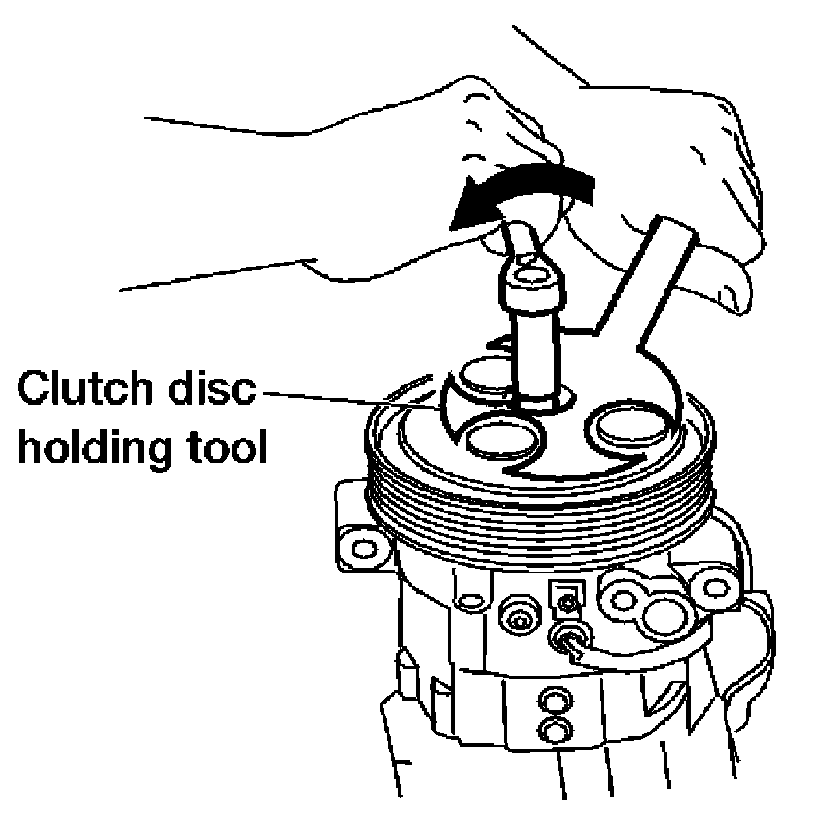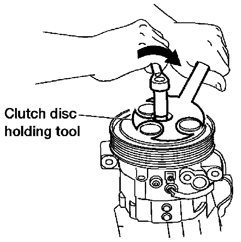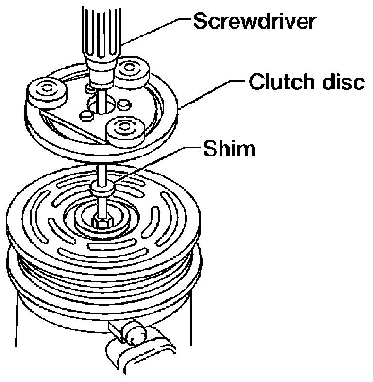 4. Install the clutch disc on the compressor shaft, together with the original shim(s). Press the clutch disc down by hand.