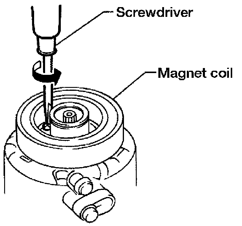 6. Remove the magnet coil harness clip using a screwdriver, remove the three magnet coil fixing screws and remove the magnet coil.