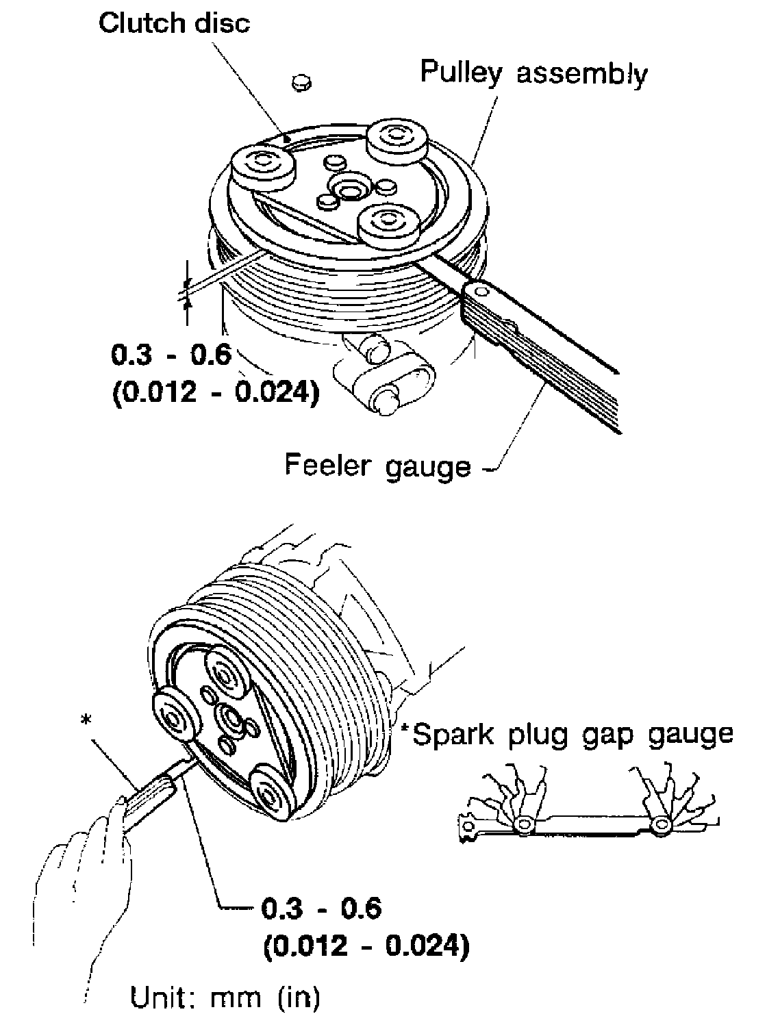 Clutch disc-to-pulley clearance : 0.3 - 0.6 mm (0.012 - 0.024 in)