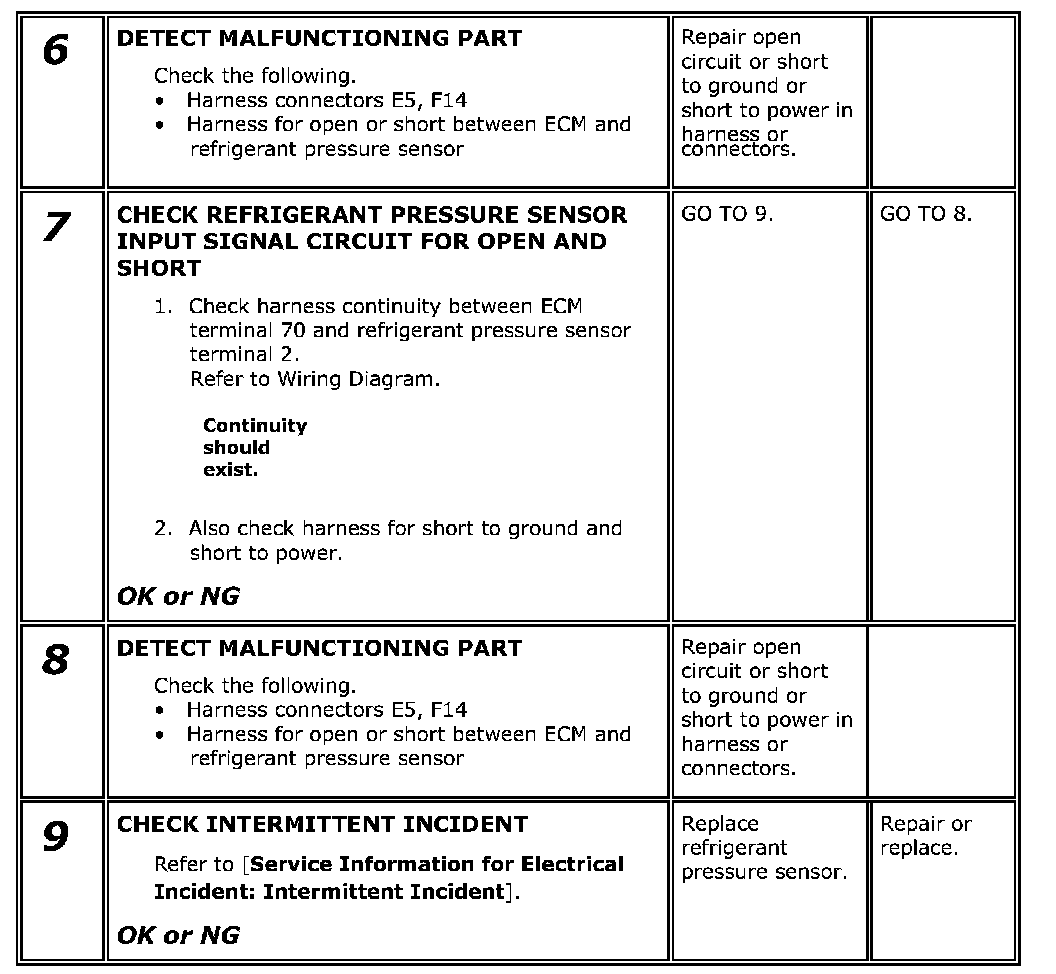 Refrigerant Pressure Sensor / Switch: Testing and Inspection