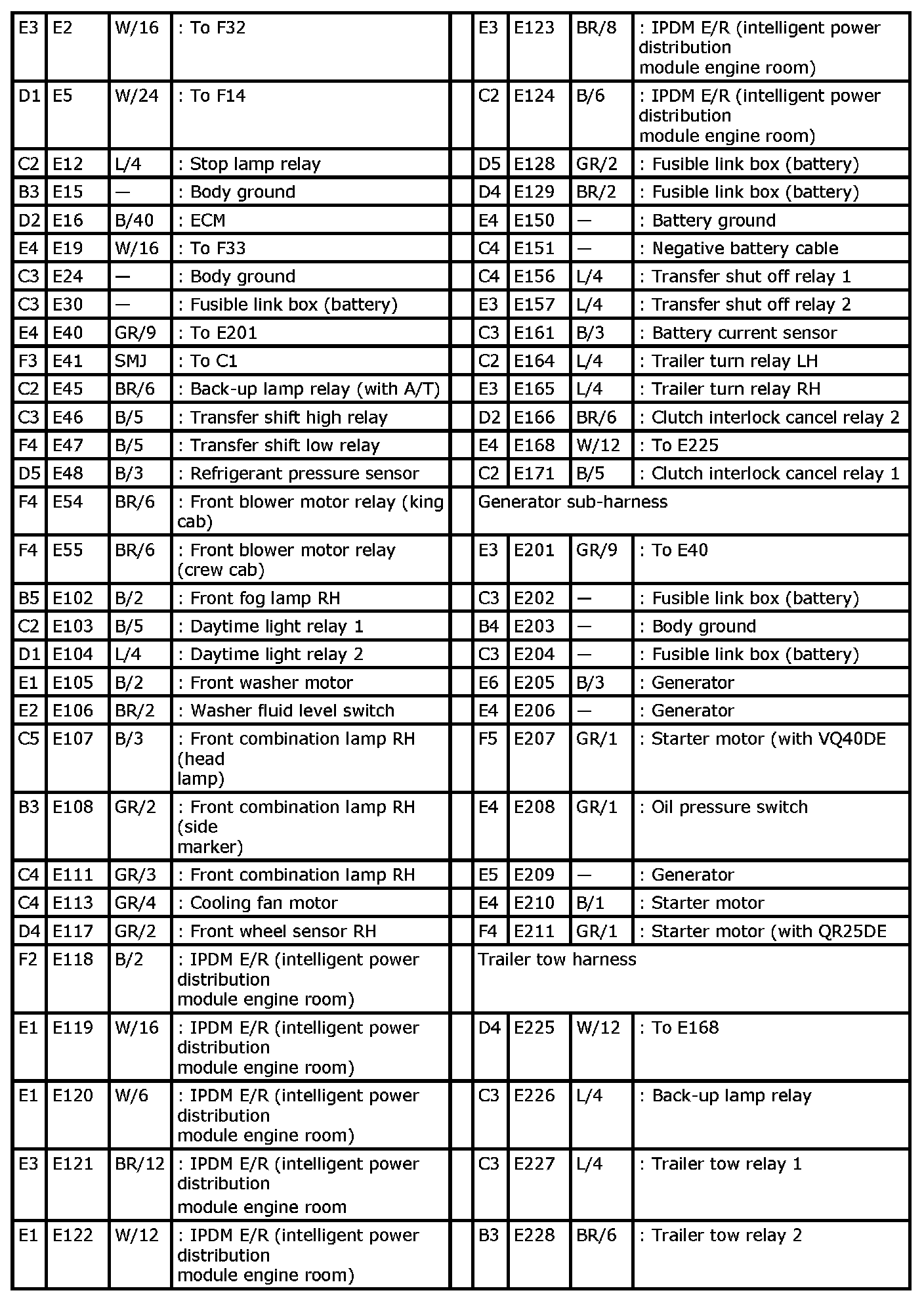 Engine Room Harness (RH View) Index