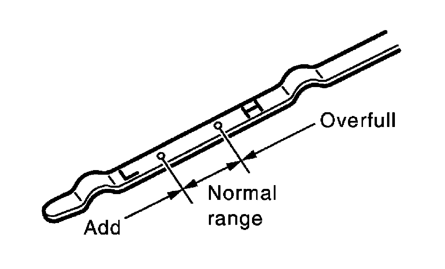^ Before starting the engine make sure the vehicle is parked on a flat and level surface, then check the oil level. If the engine is already running, turn it off and allow 10 minutes before checking.