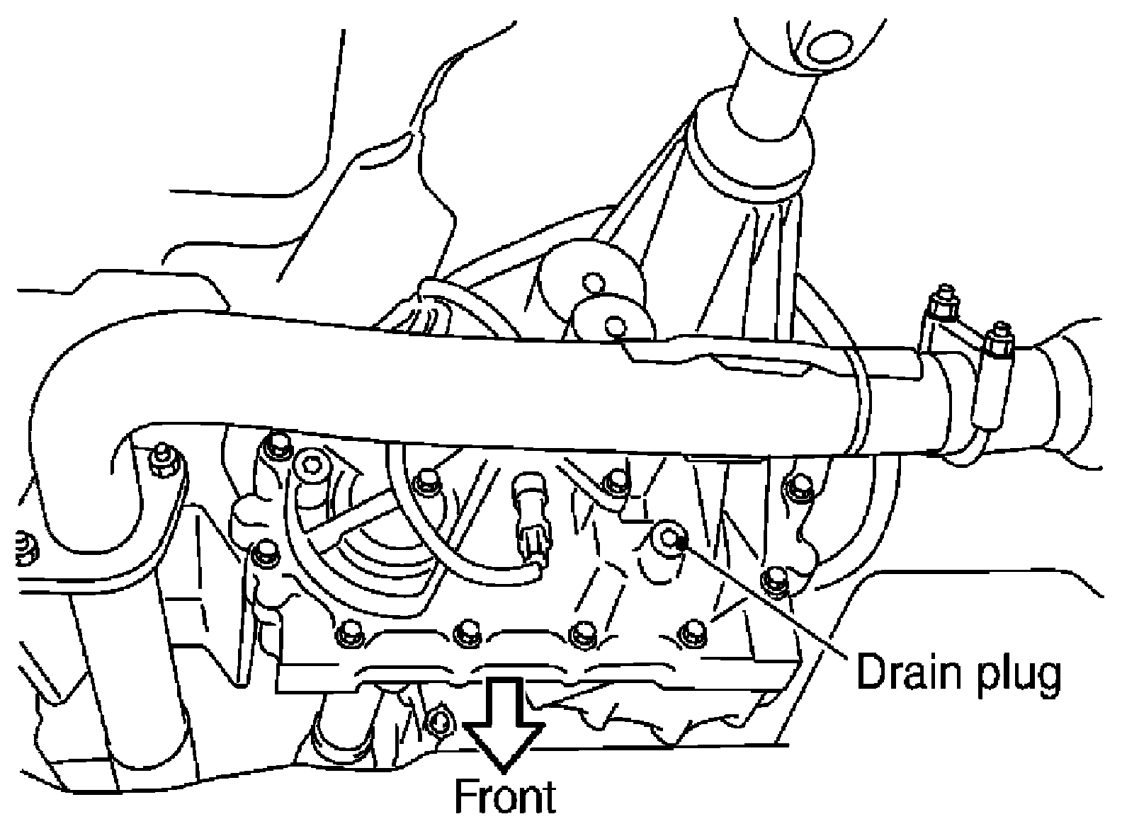 3. Install the drain plug with a new gasket to the transfer. Tighten to the specified torque. Refer to [Transfer Assembly: Disassembly and Assembly].