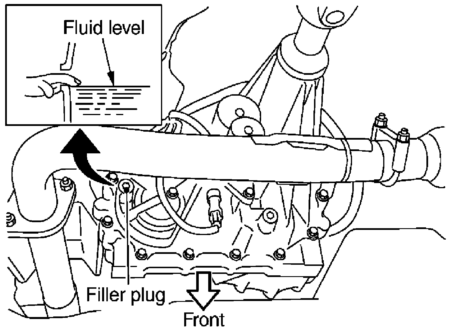 2. Fill the transfer with new fluid until the fluid level reaches the specified limit near the filler plug hole.