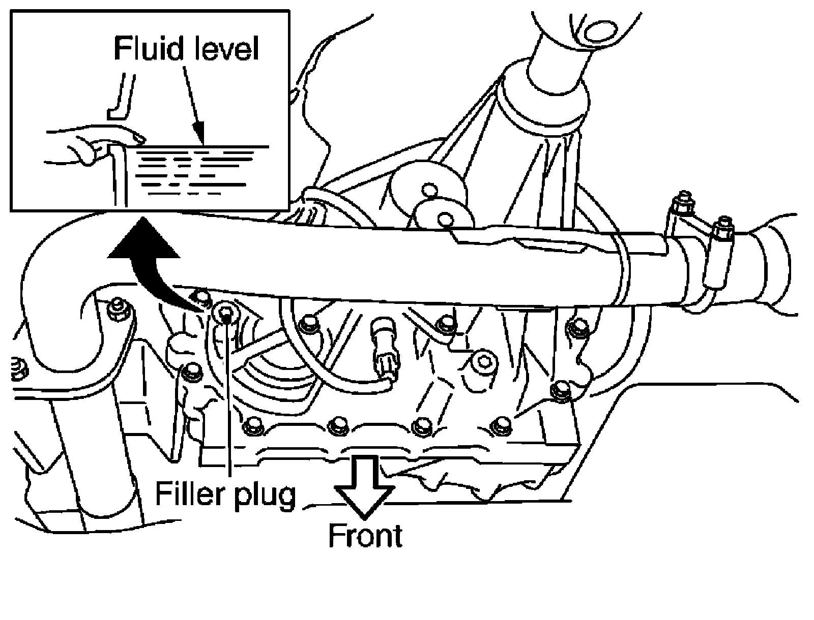 2) Fill the transfer with new fluid until the fluid level reaches the specified limit near the filler plug hole.
