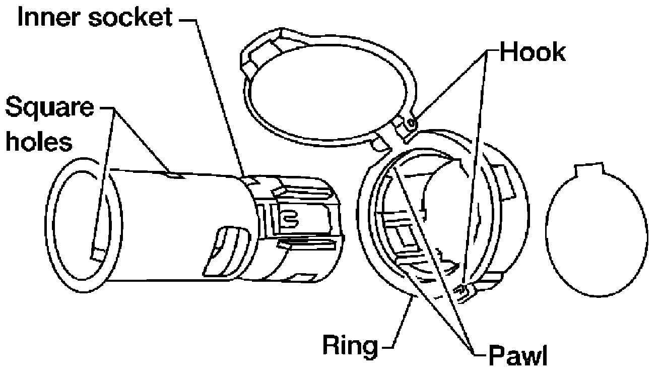 2. Remove inner socket from the ring, while pressing the hook on the ring out from square hole.