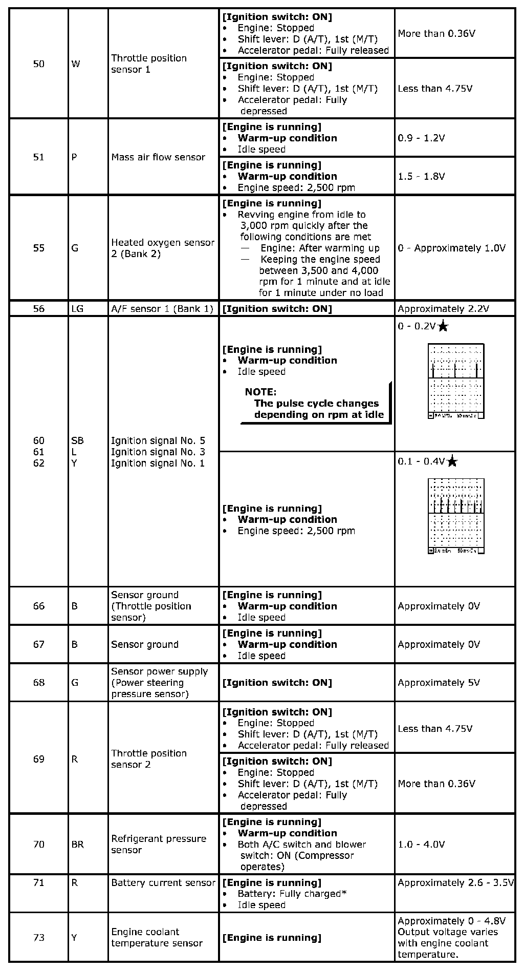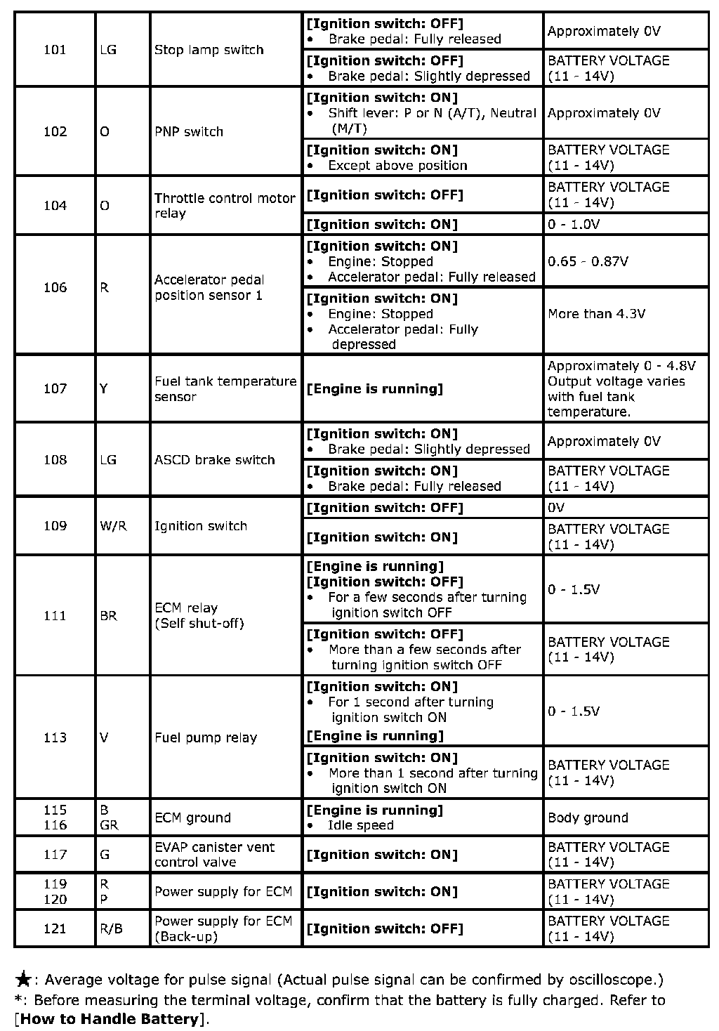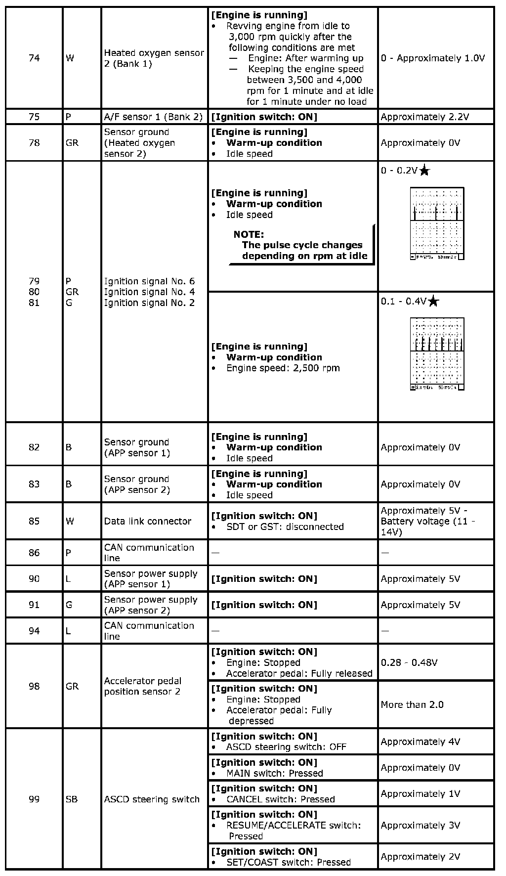 Specification data are reference values and are measured between each terminal and ground. Pulse signal is measured by SDT.