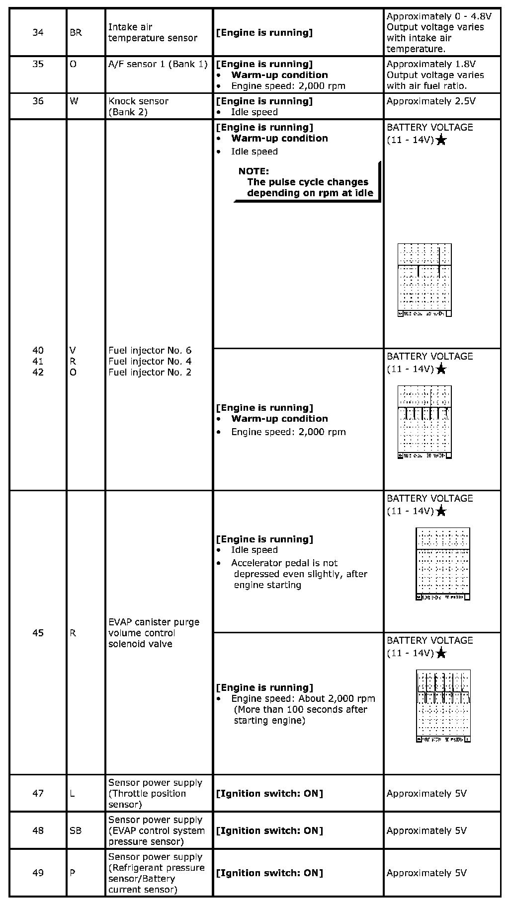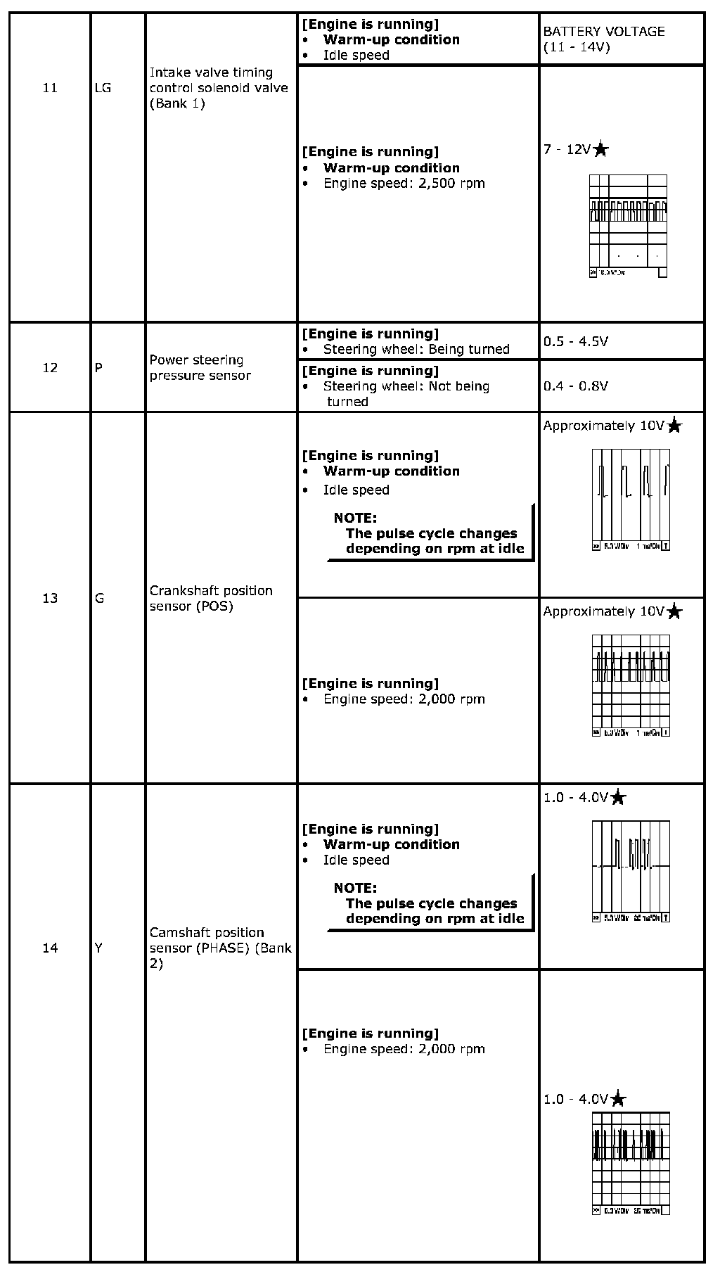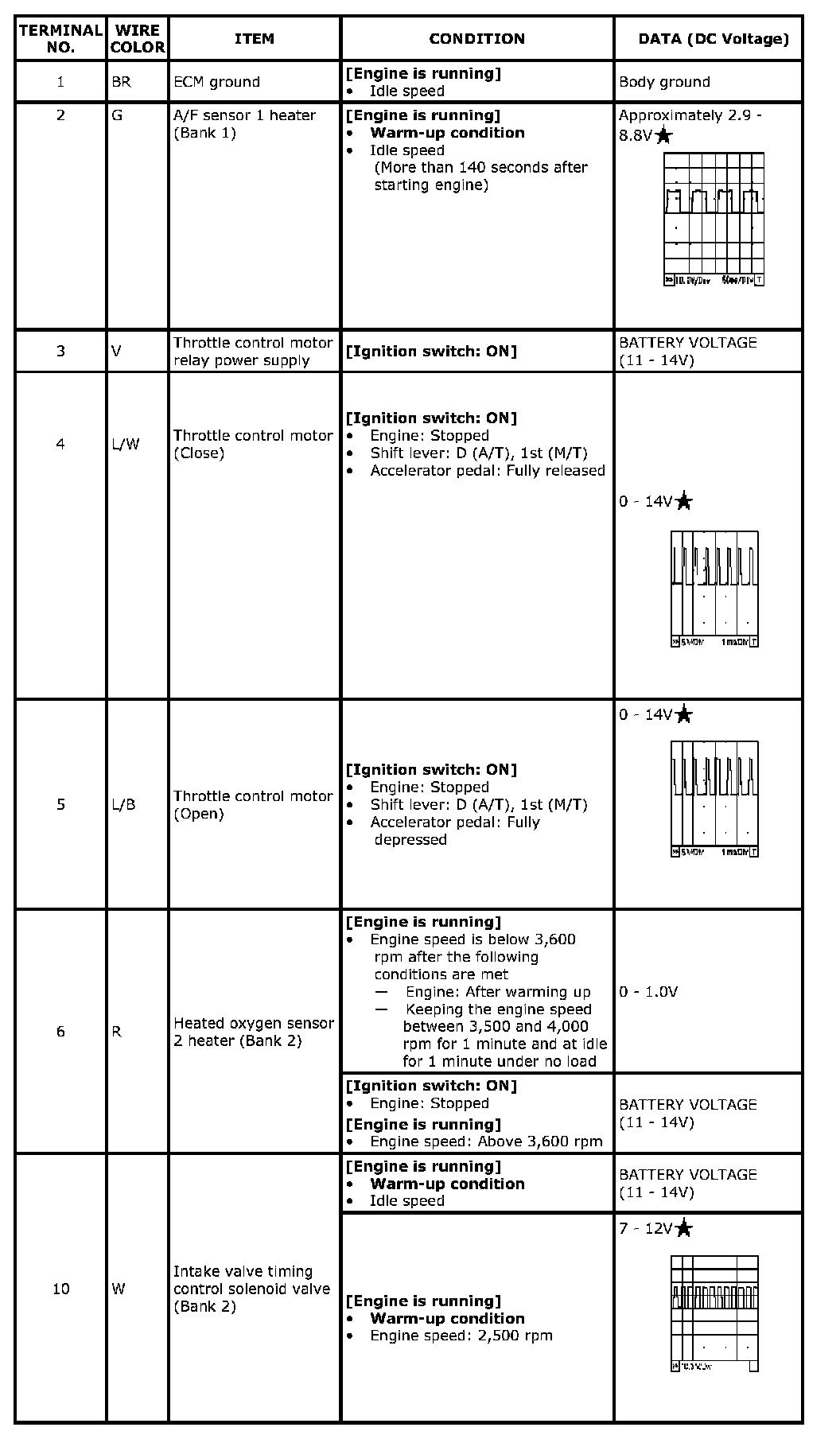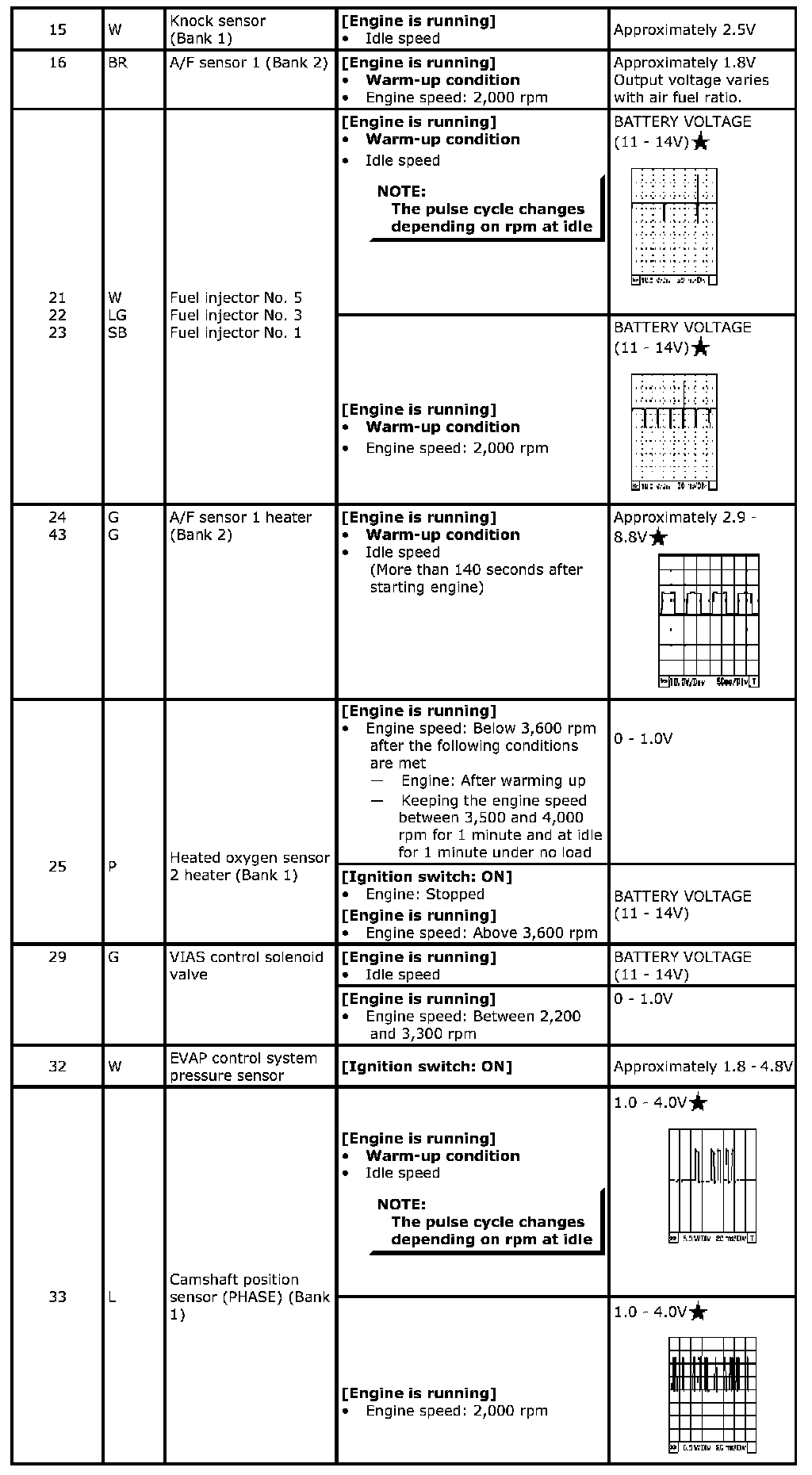 Specification data are reference values and are measured between each terminal and ground. Pulse signal is measured by SDT.