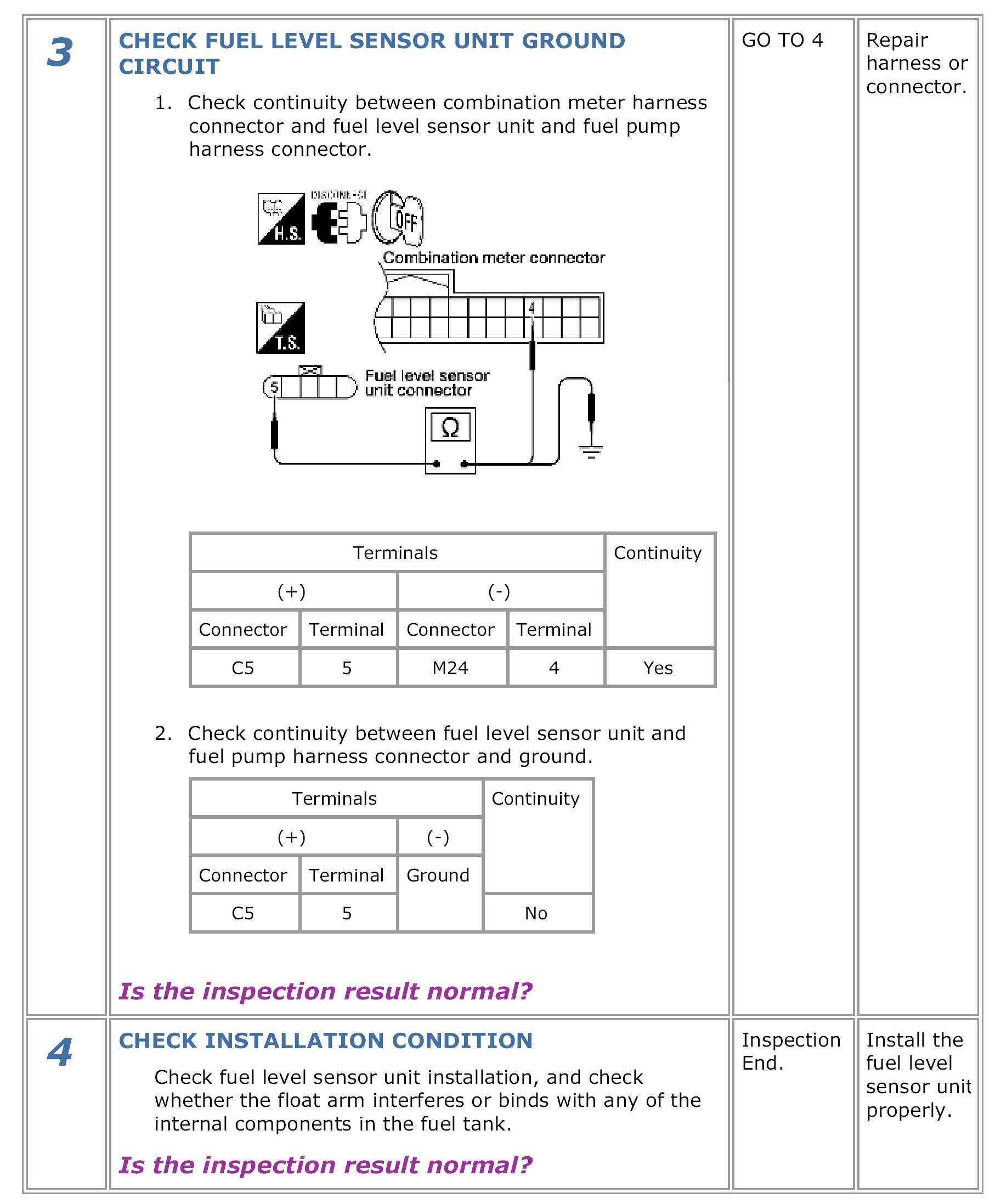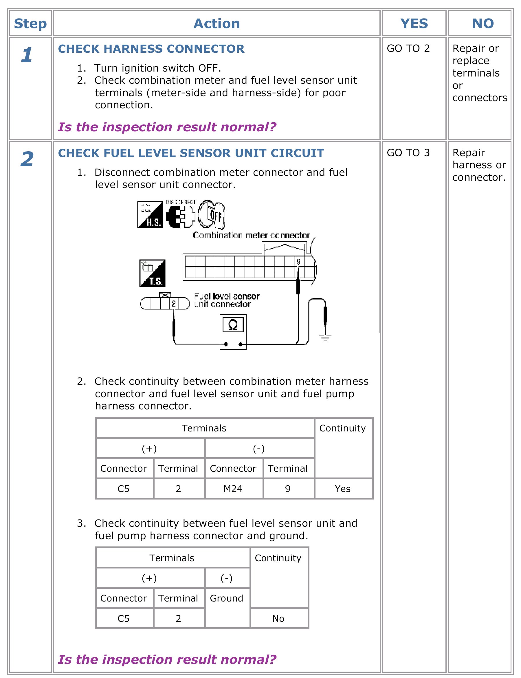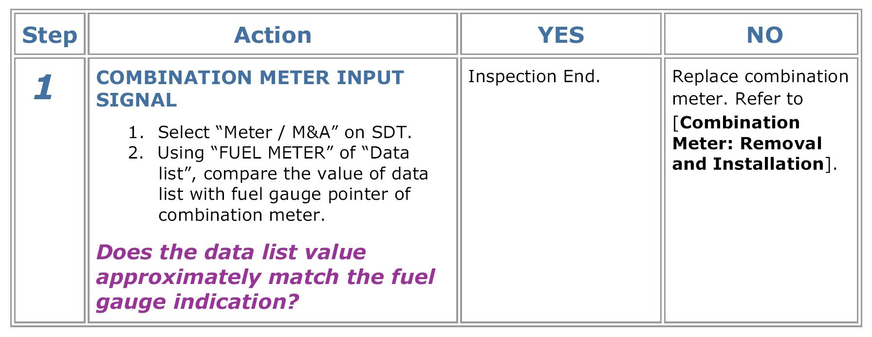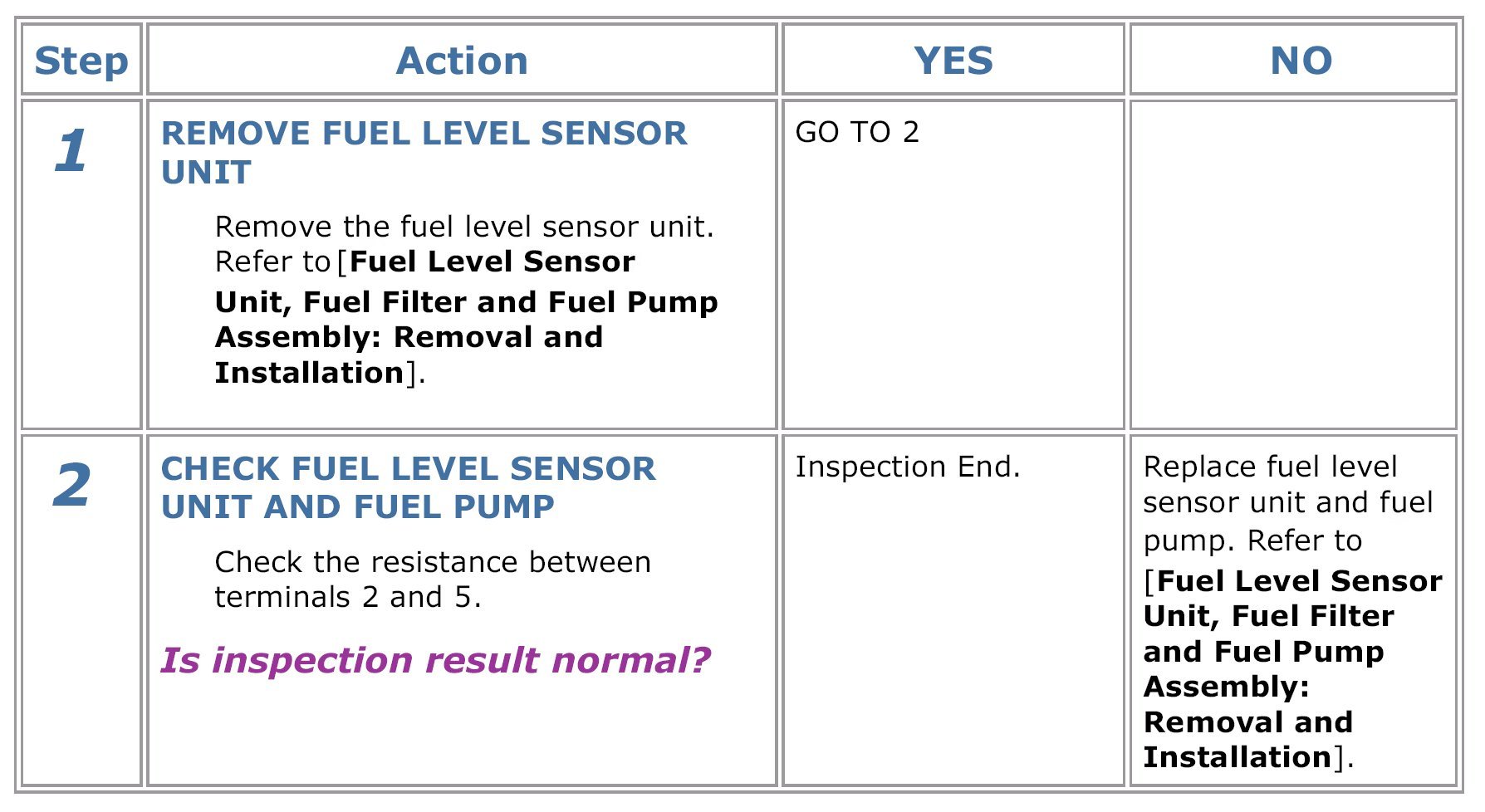 The fuel level sensor unit and fuel pump detects the approximate fuel level in the fuel tank and transmits the fuel level signal to the combination meter.