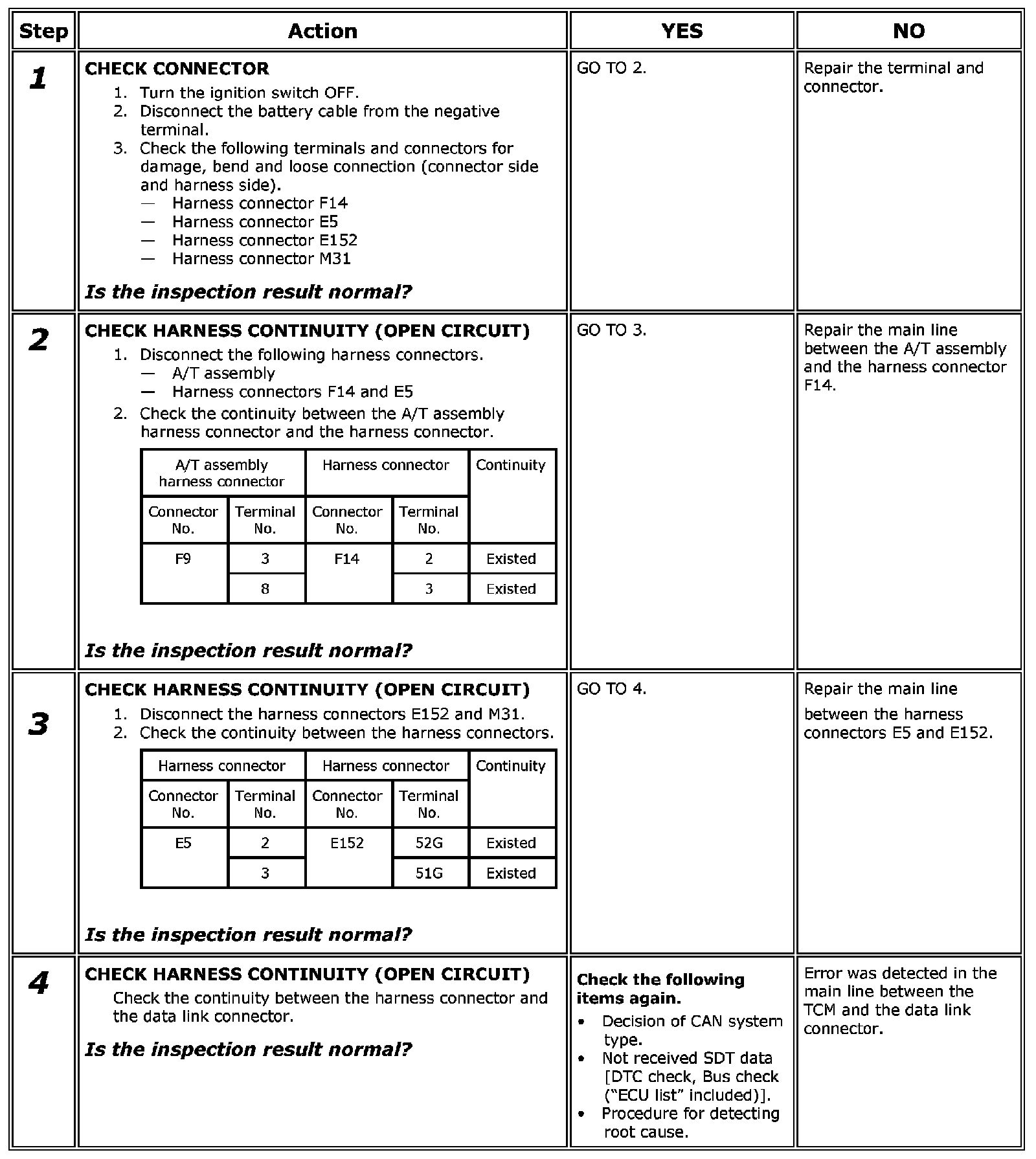 Main Line Between TCM and DLC Circuit Check
