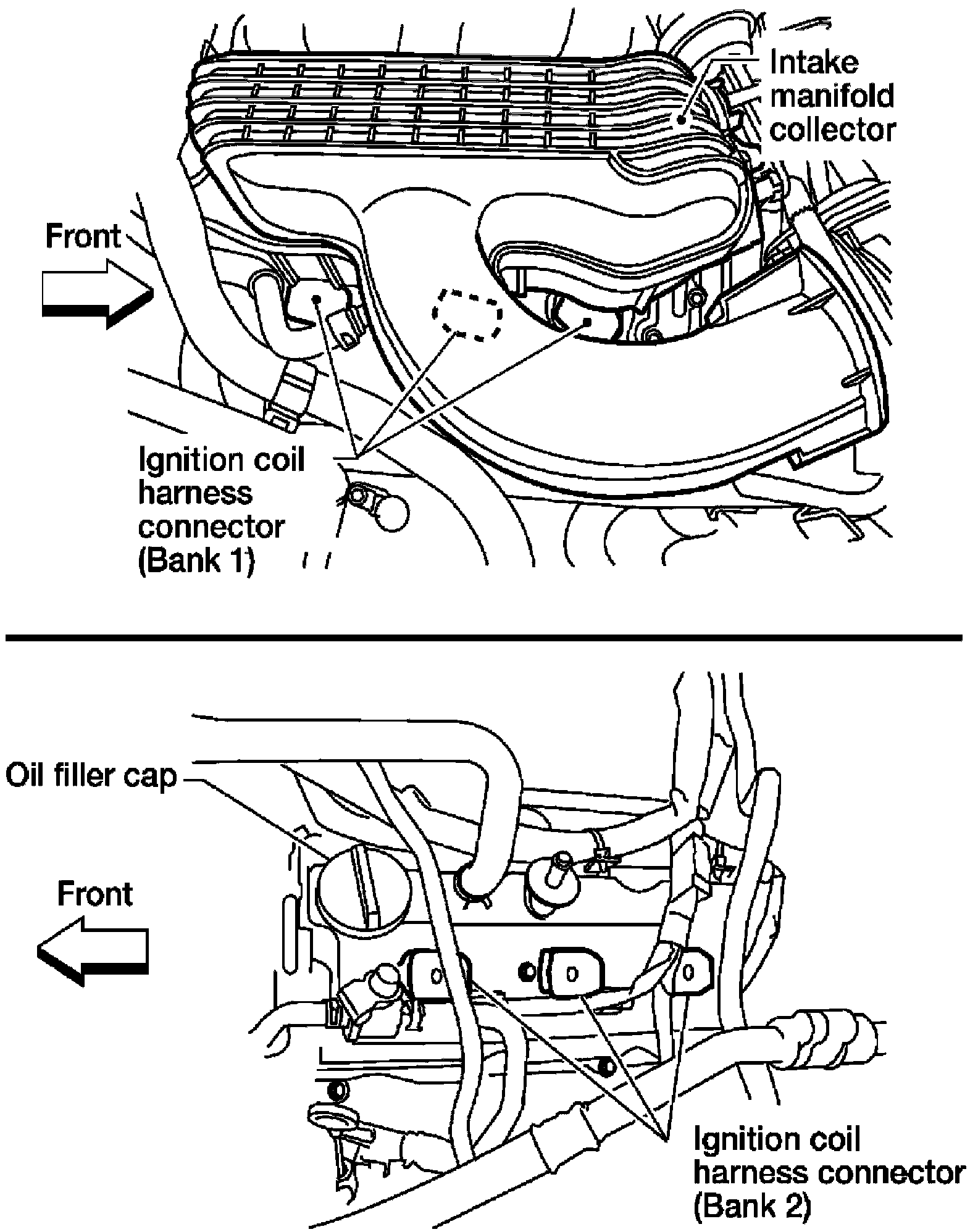 11. Remove ignition coil harness connectors to avoid the electrical discharge from the ignition coils.