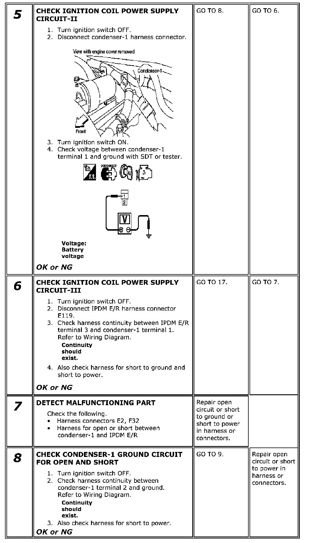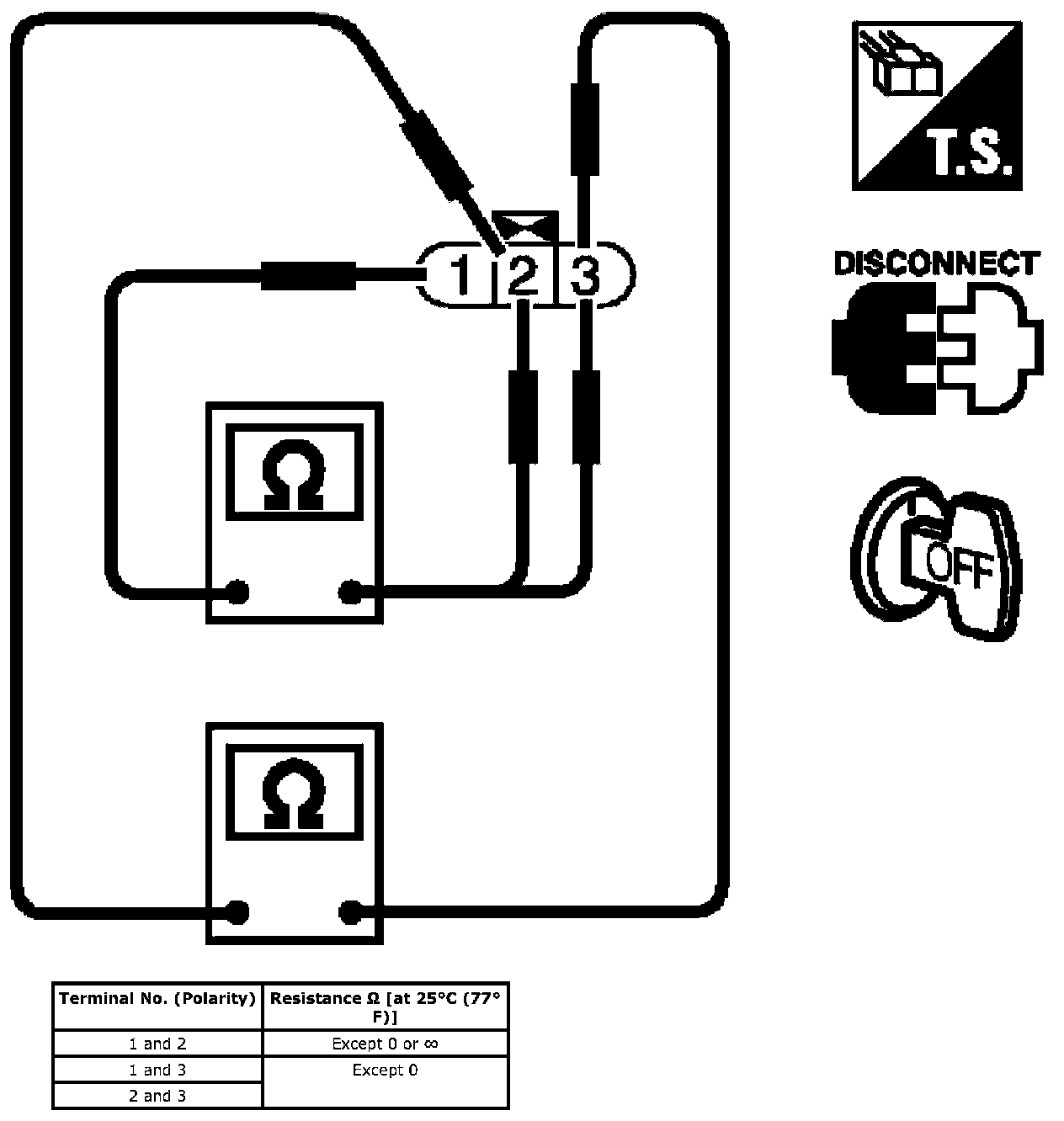 3. Check resistance between condenser-1 terminals 1 and 2.