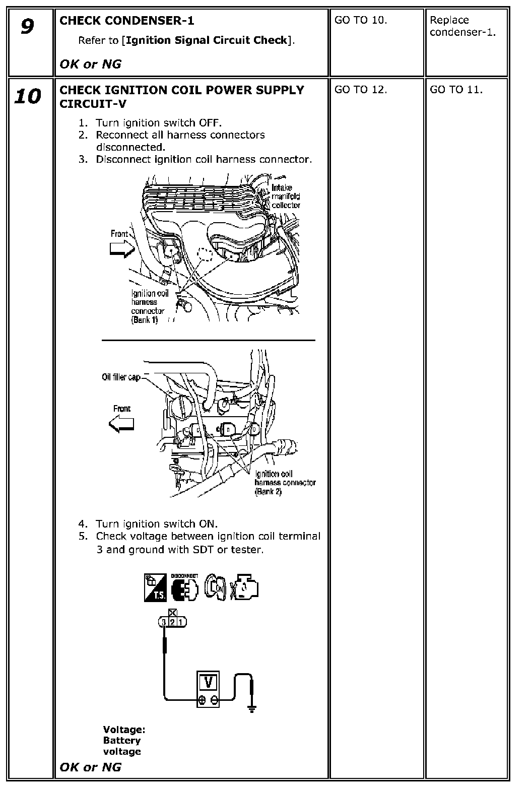 12. Remove ignition coil and spark plug of the cylinder to be checked.