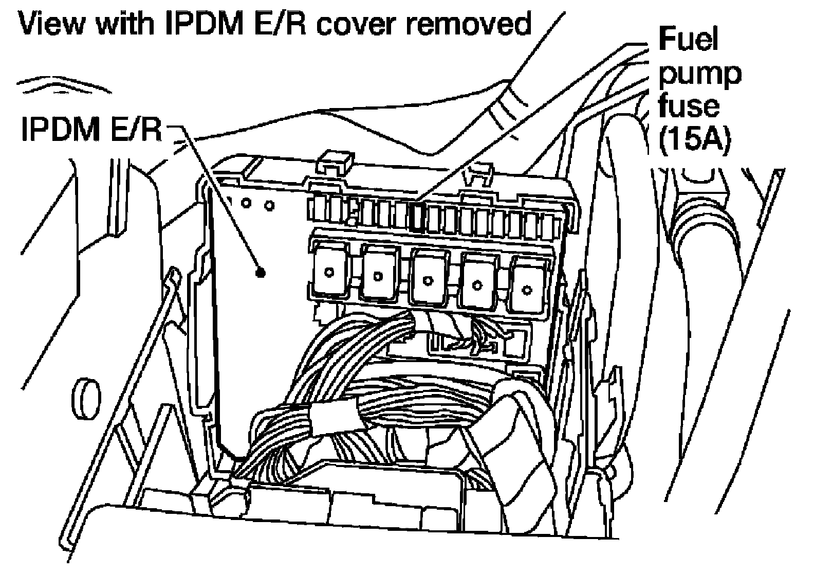 7. Remove fuel pump fuse (No.48) in IPDM E/R to release fuel pressure.