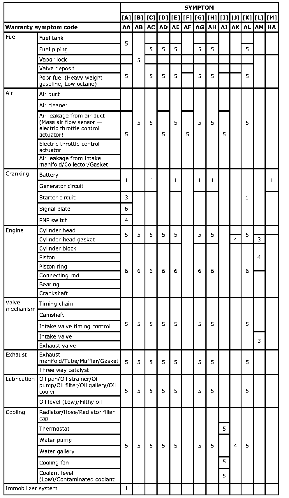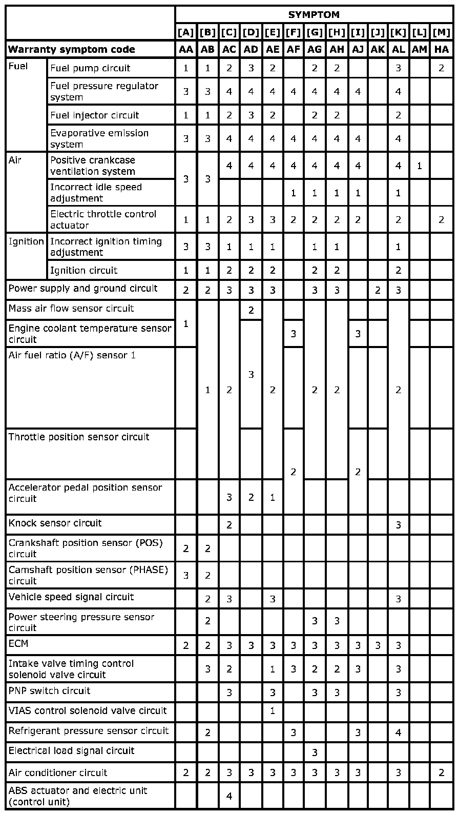 Engine Control System Symptoms: Symptom Matrix Chart