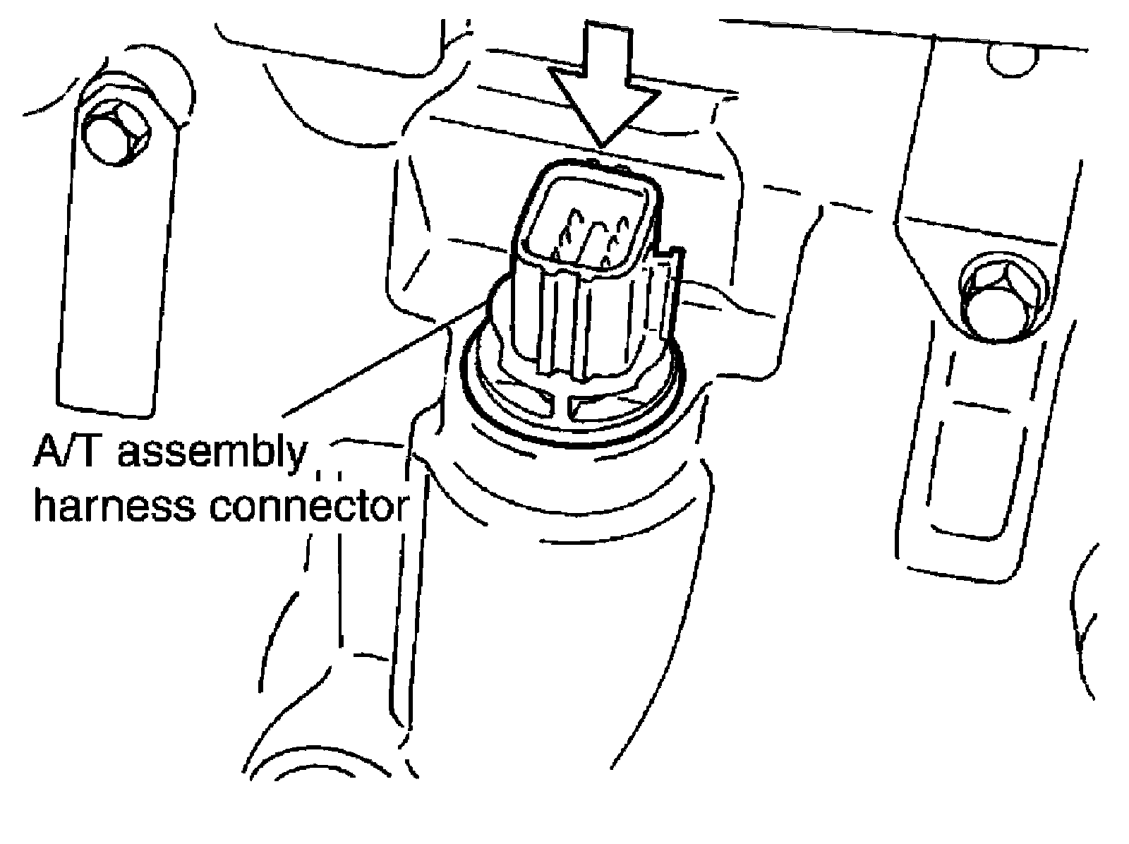 ^ Hang down revolution sensor harness toward outside so as not to disturb installation of control valve with TCM.