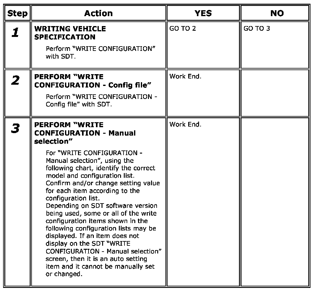 - WRITE CONFIGURATION - Manual selection is the function to select and write vehicle configuration on BCM manually.