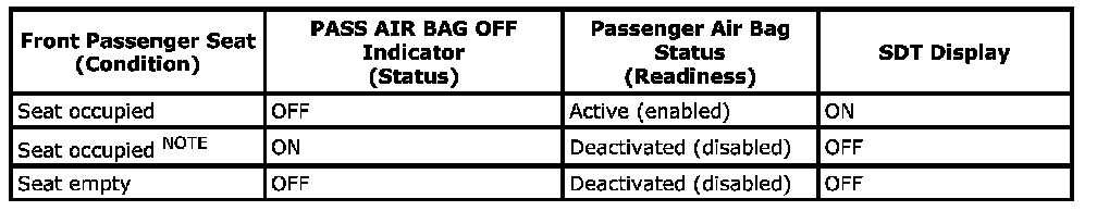 NOTE: In case of customer concern, SDT can be used to confirm the passenger air bag status (readiness).