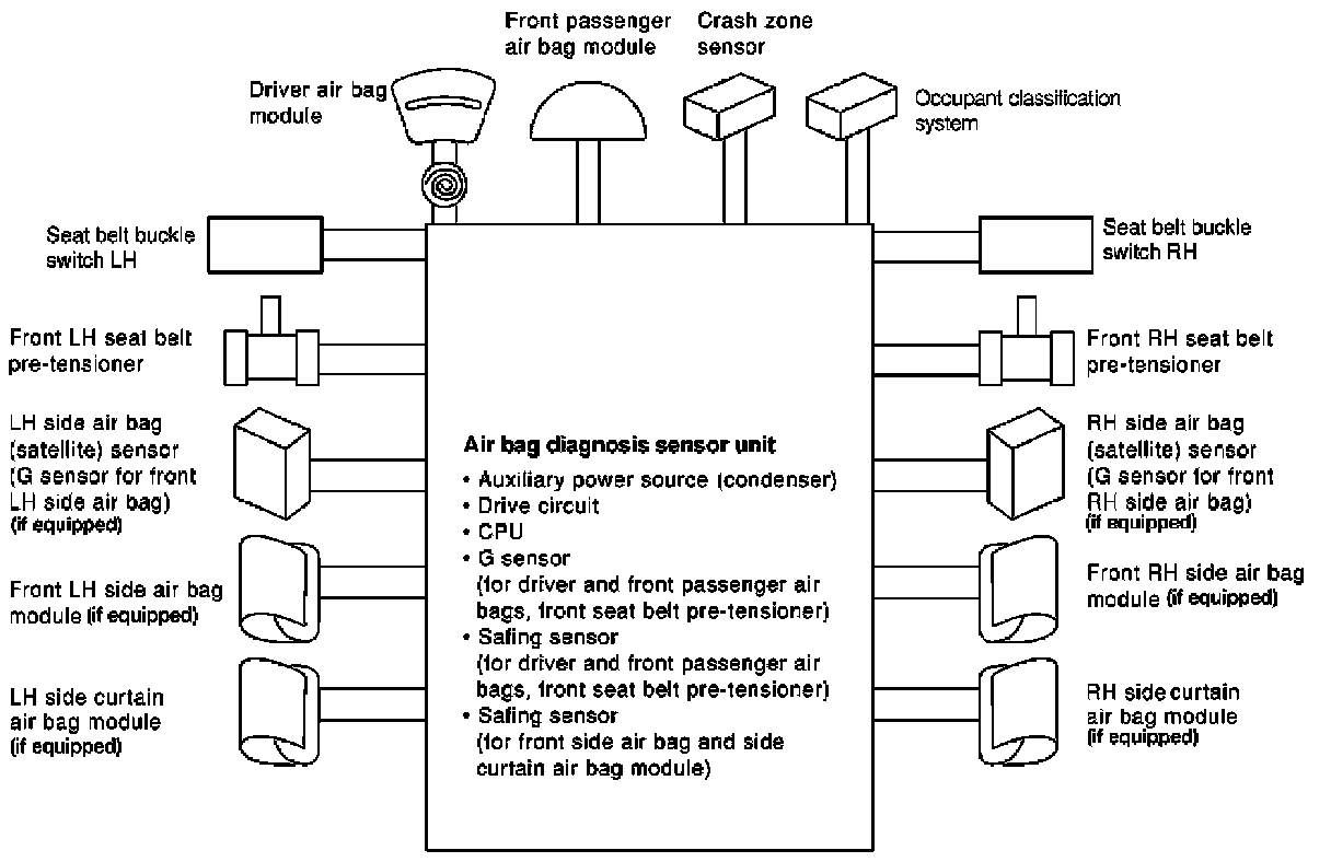 The air bag deploys if the air bag diagnosis sensor unit is activated while the ignition switch is in the ON or START position.