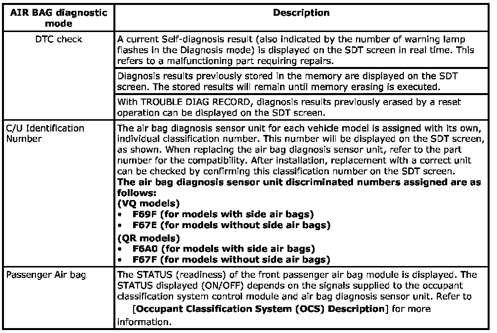 SDT Function (Airbag):
