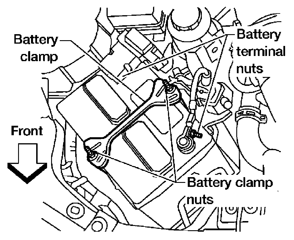 2. Remove battery clamp nuts and battery clamp.