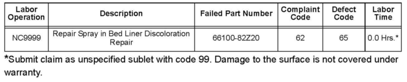 ^ Only a trained paint and body shop technician who is familiar with bedliner repair techniques should perform these repairs.