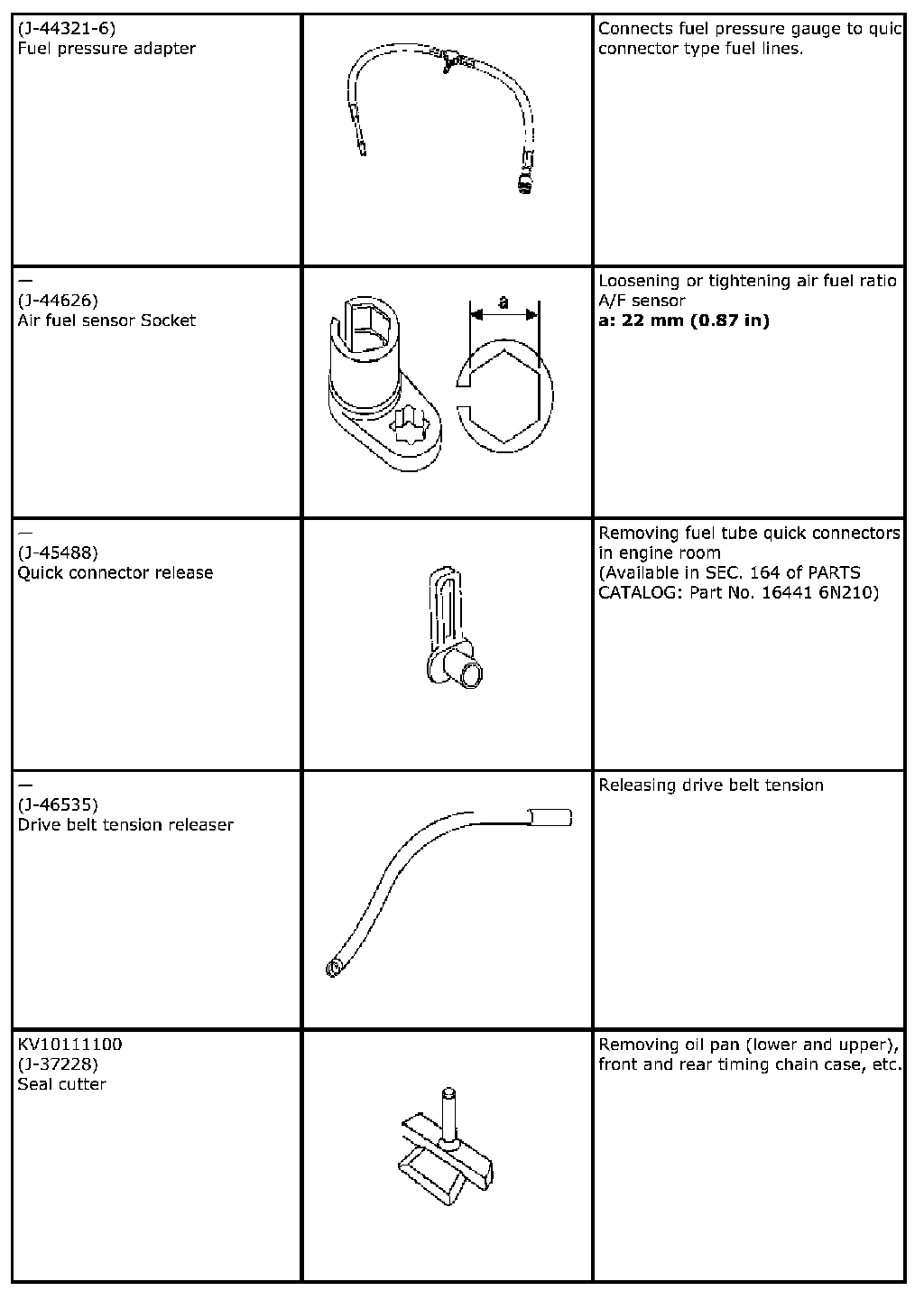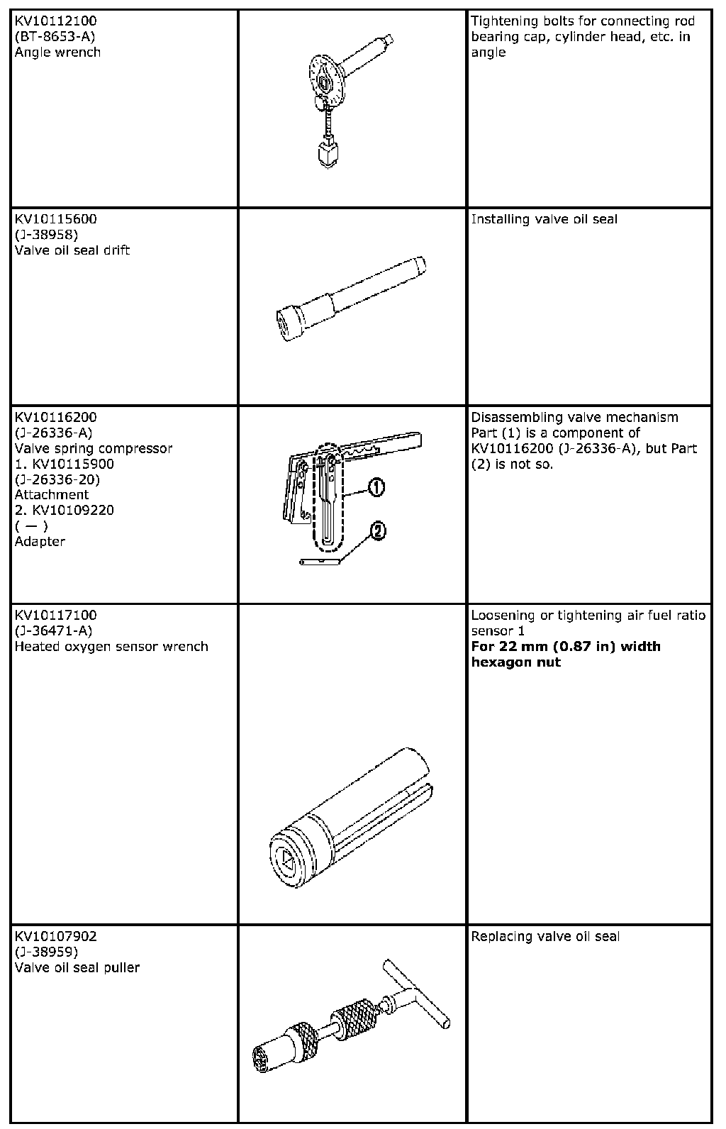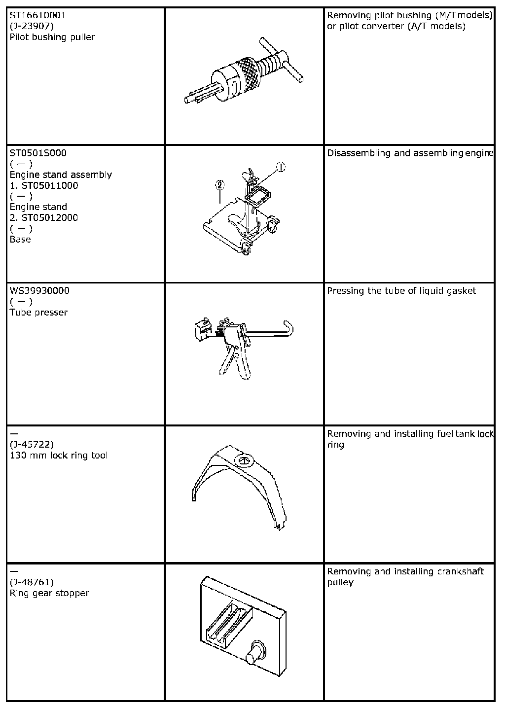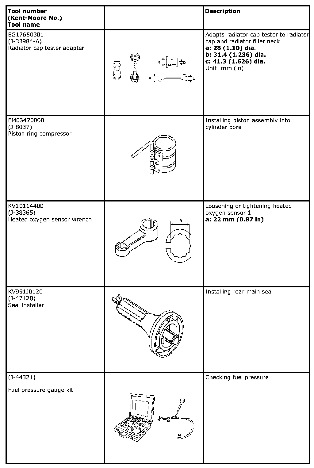 The actual shapes of Kent-Moore tools may differ from those of special service tools illustrated here.