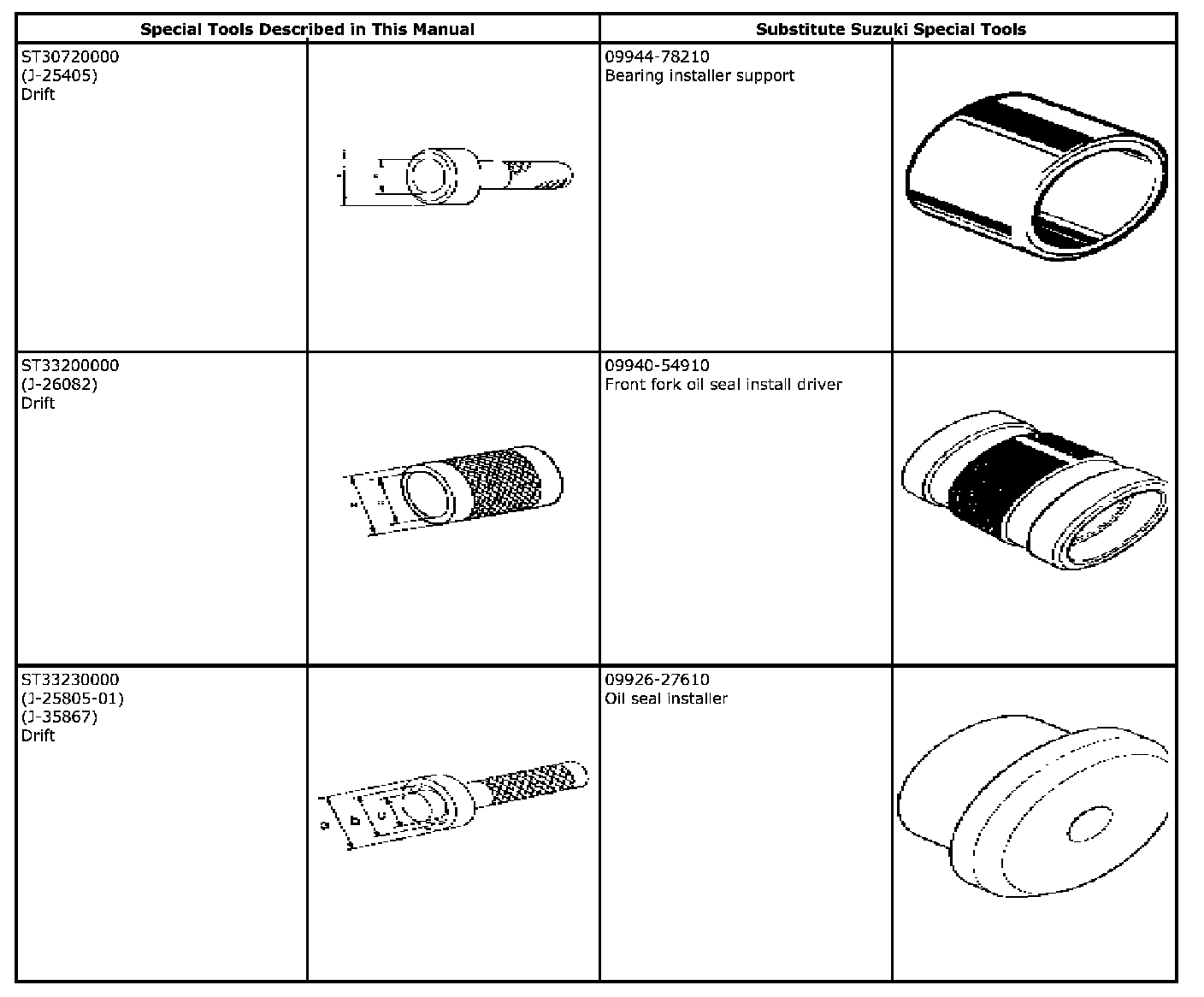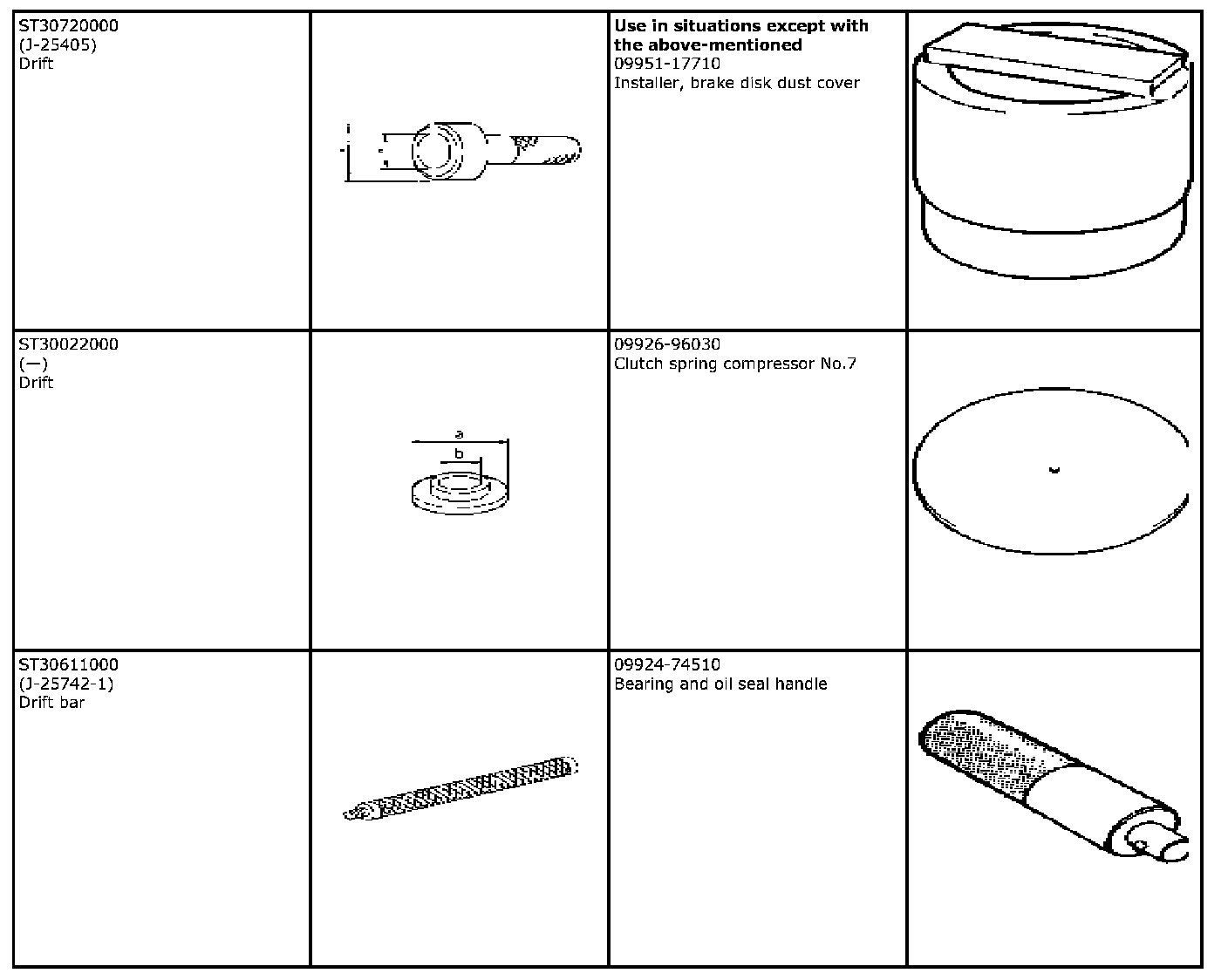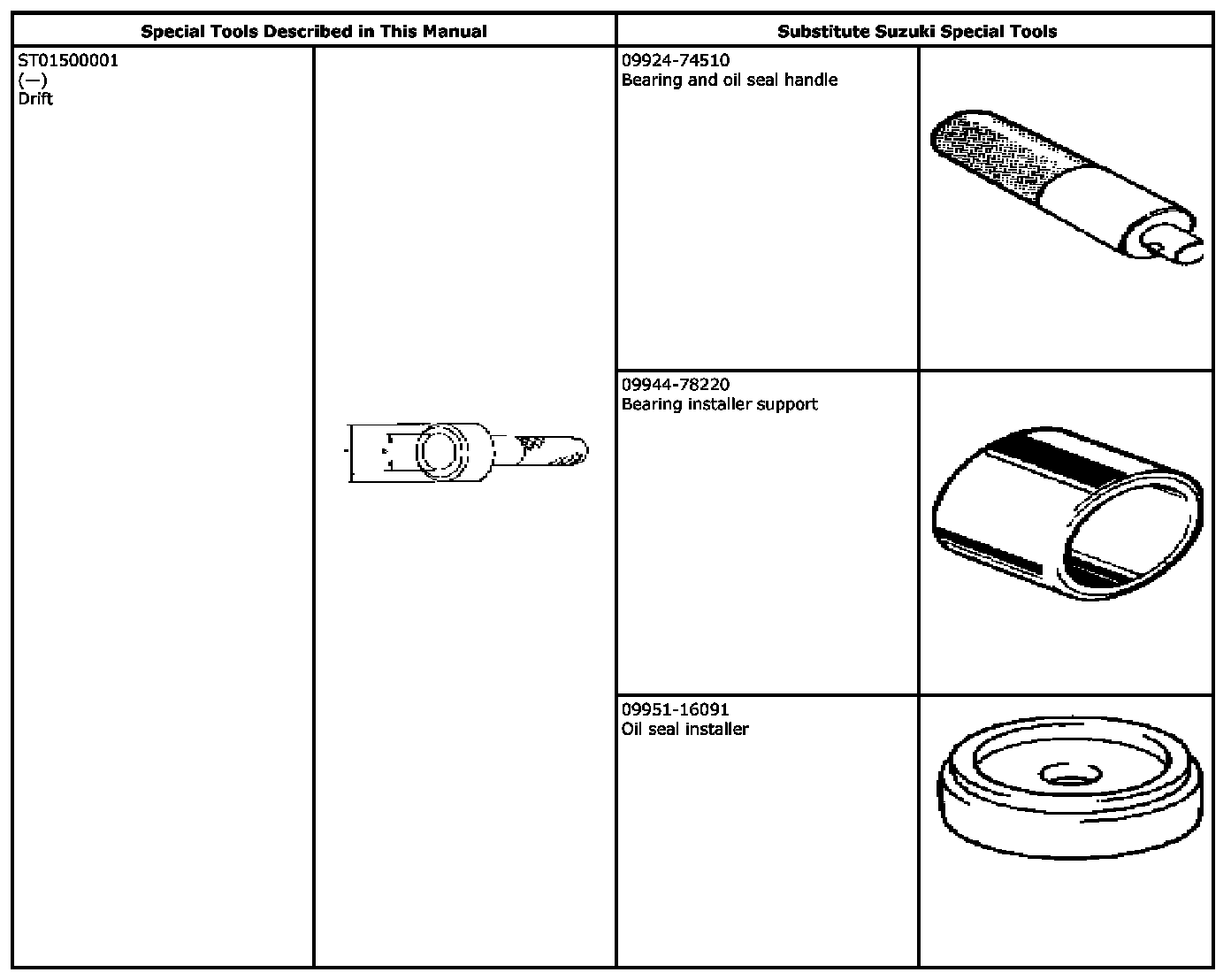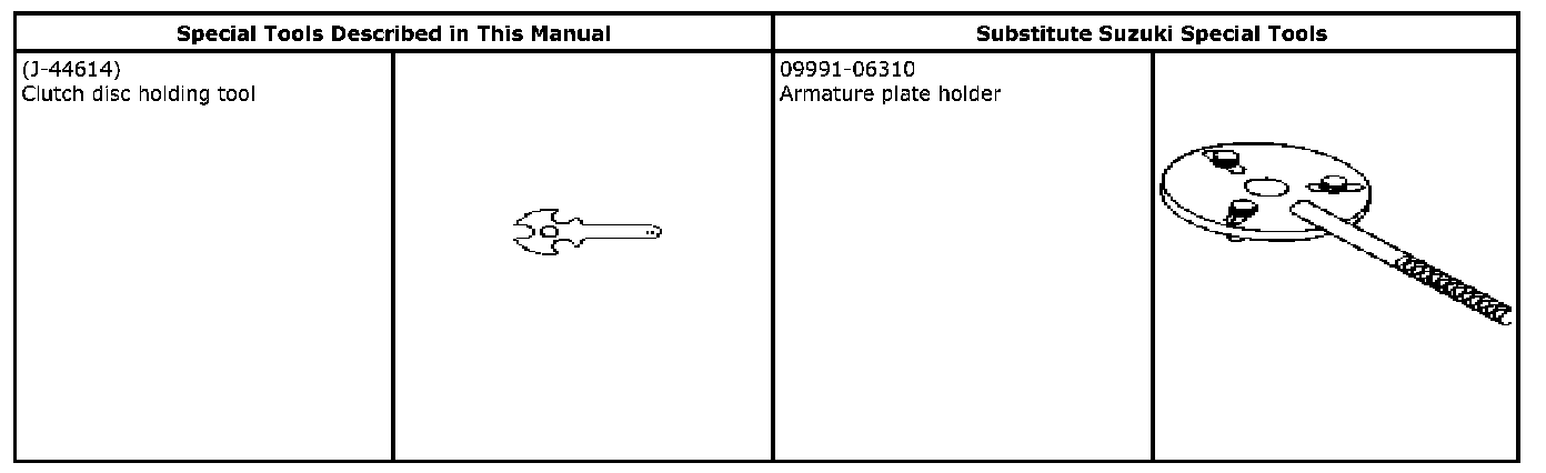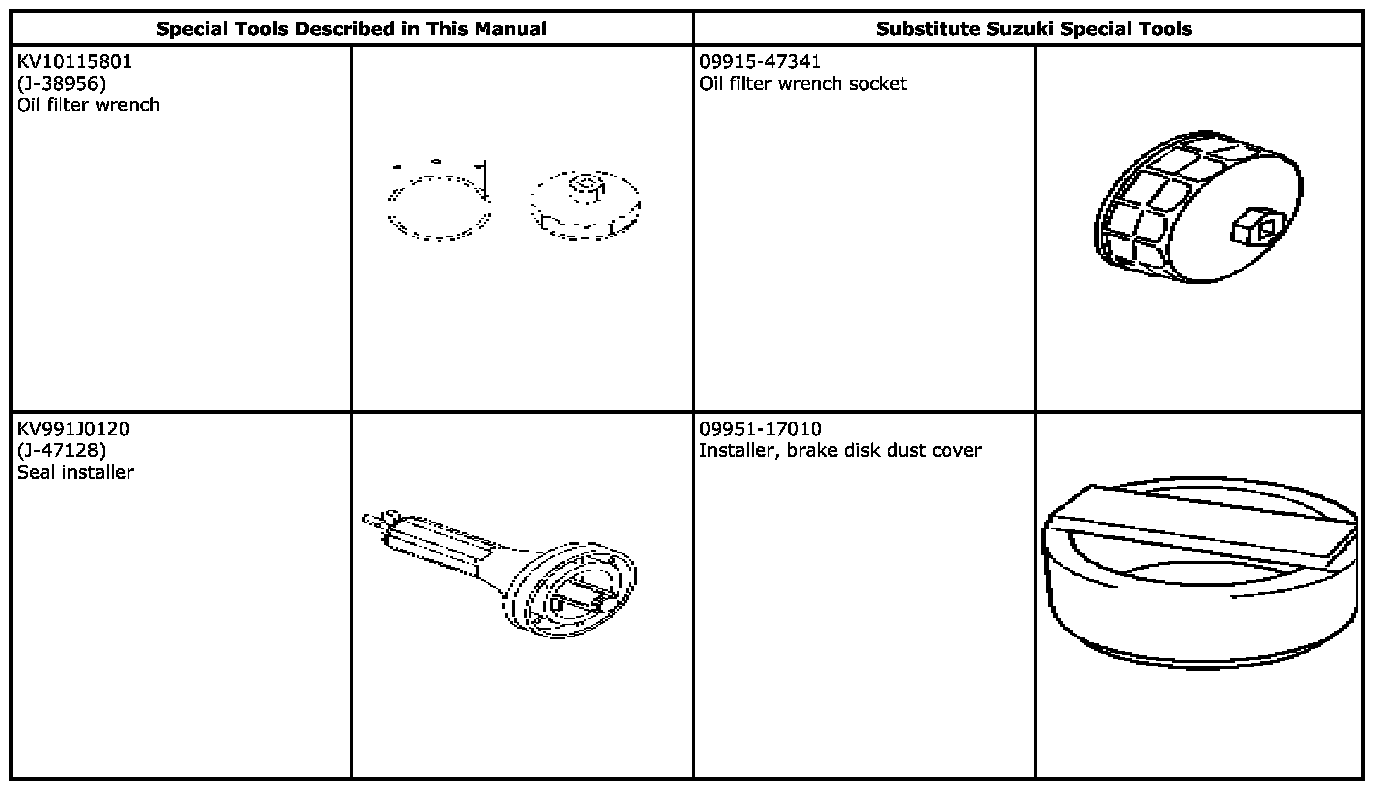 The substitute special tools below are usable instead of the special tools described in this manual.