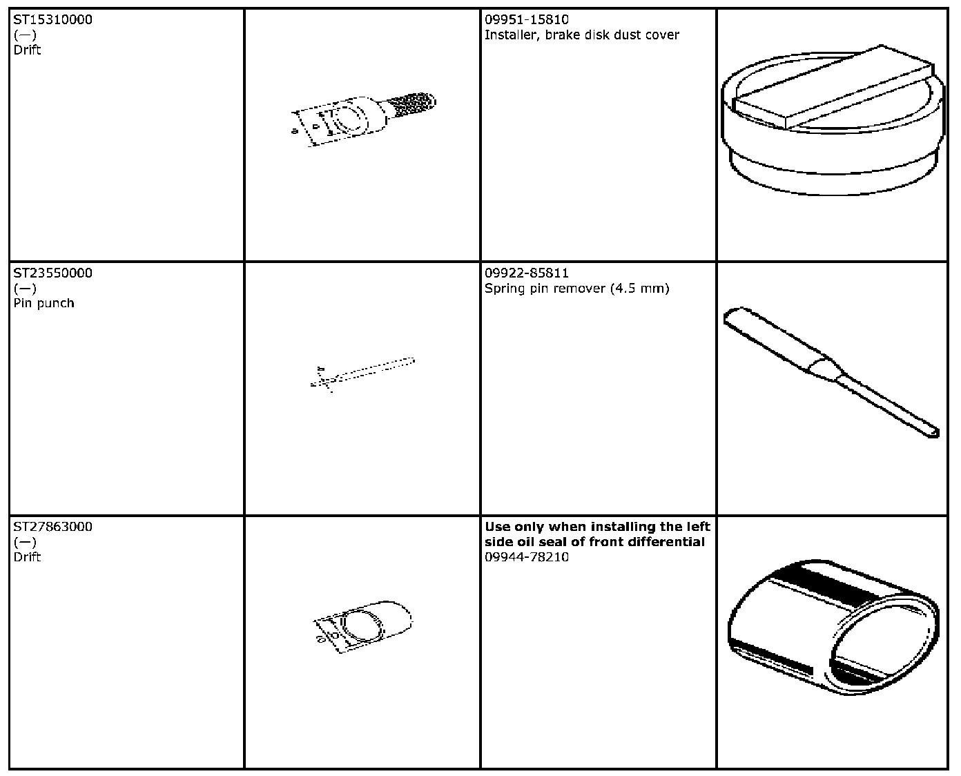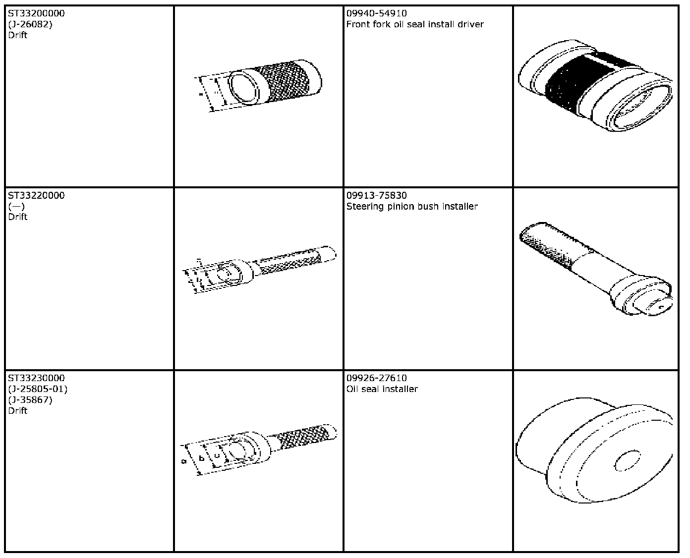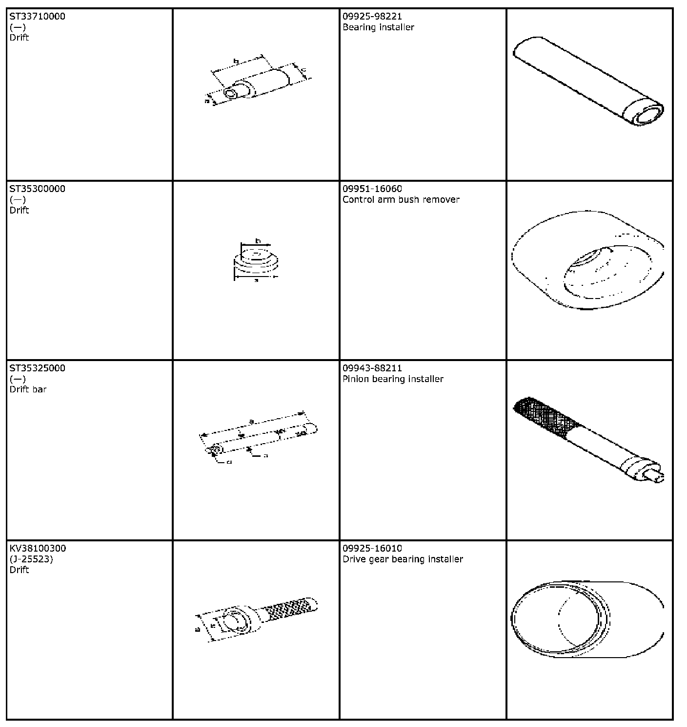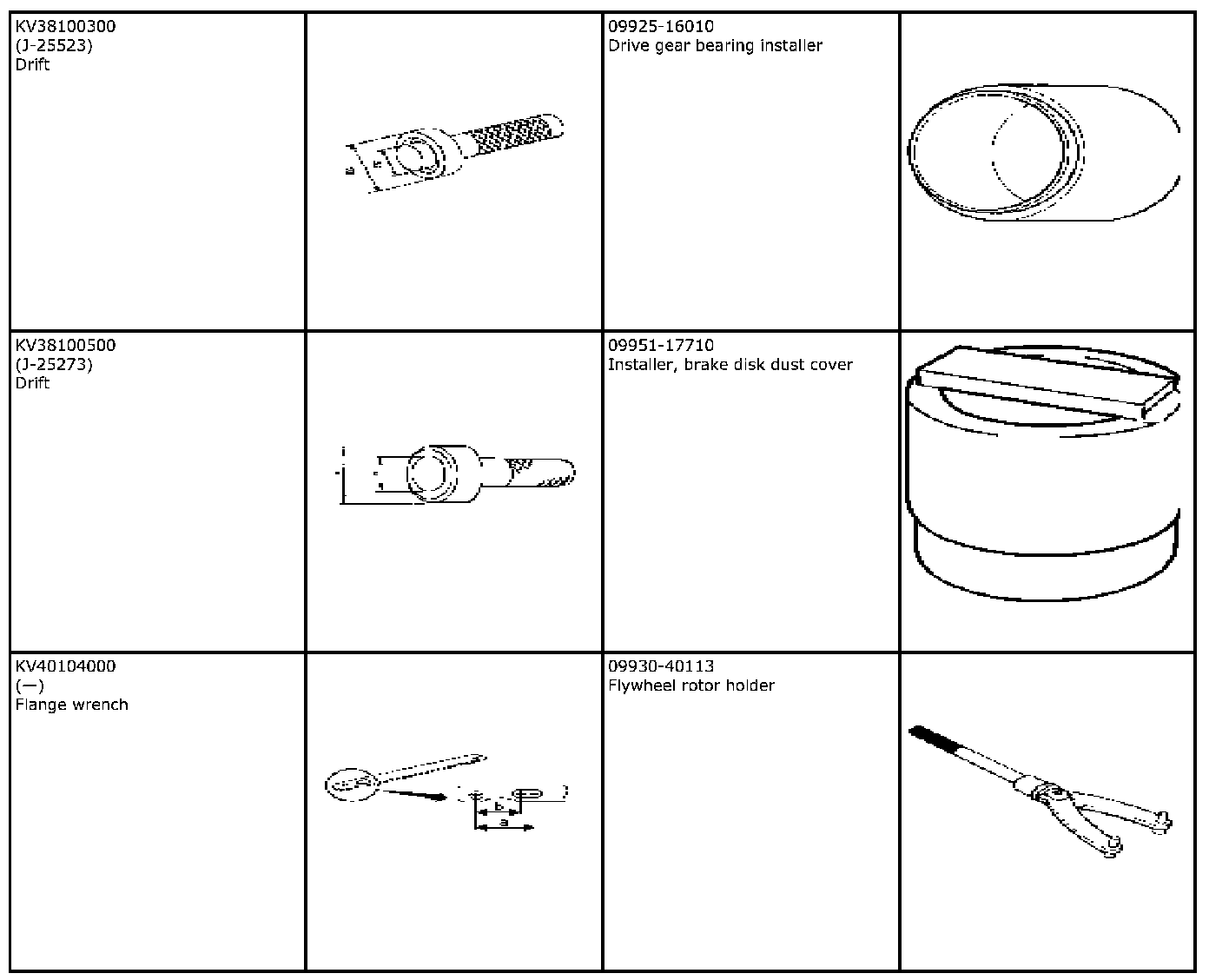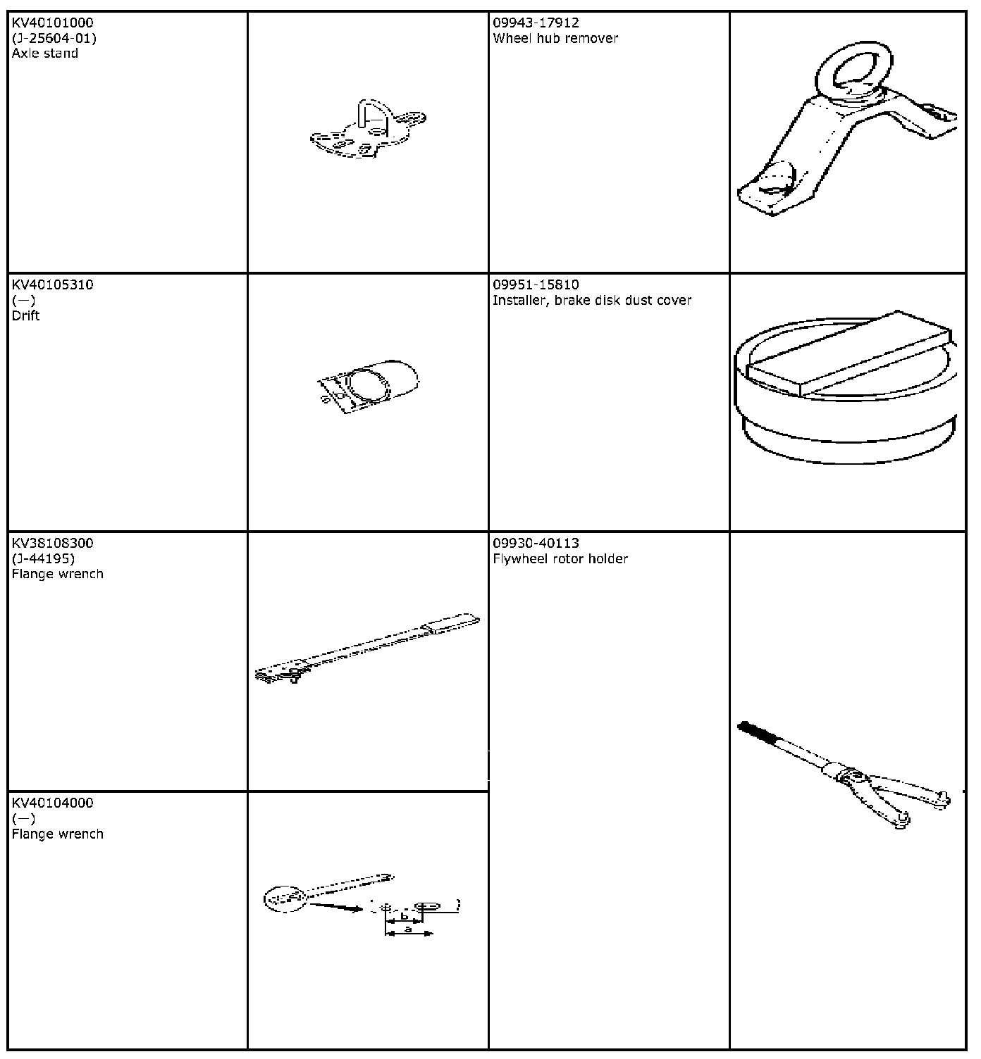The substitute special tools below are usable instead of the special tools described in this manual.