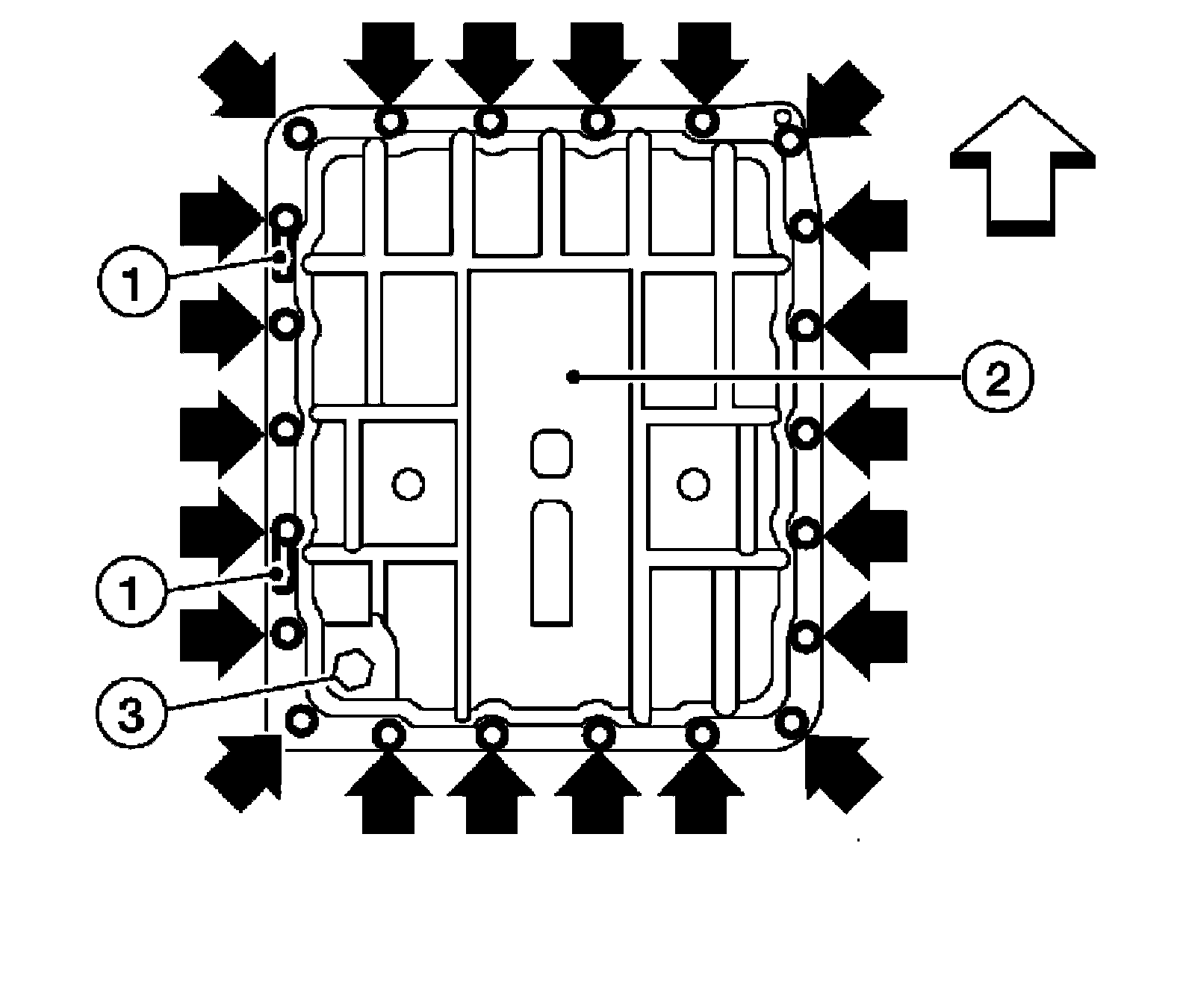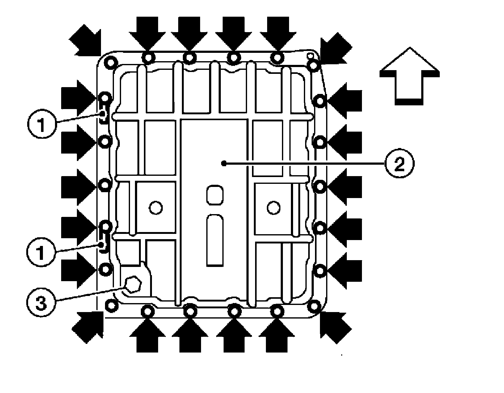 ^ Partially install the oil pan bolts in a criss-cross pattern to prevent dislocation of the gasket.