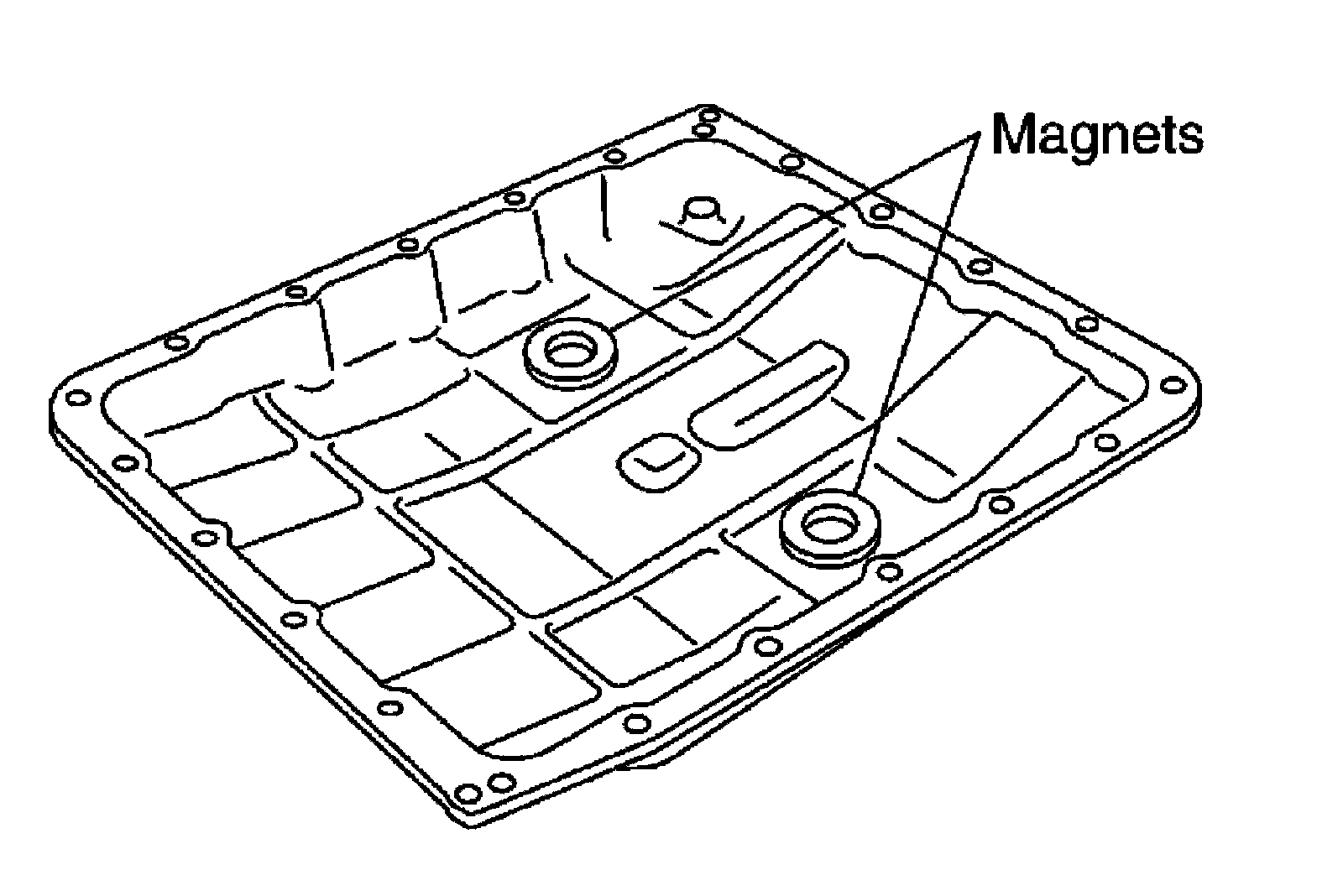 5) Check for foreign materials in oil pan to help determine cause of malfunction. If the A/T fluid is very dark, has some burned smell, or contains foreign particles then friction material (clutches, band) may need replacement. A tacky film that will not wipe clean indicates varnish build up. Varnish can cause valves, servo, and clutches to stick and can inhibit pump pressure.
