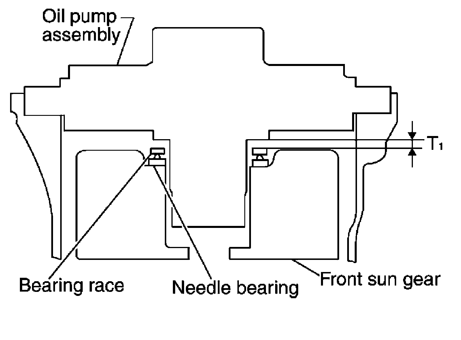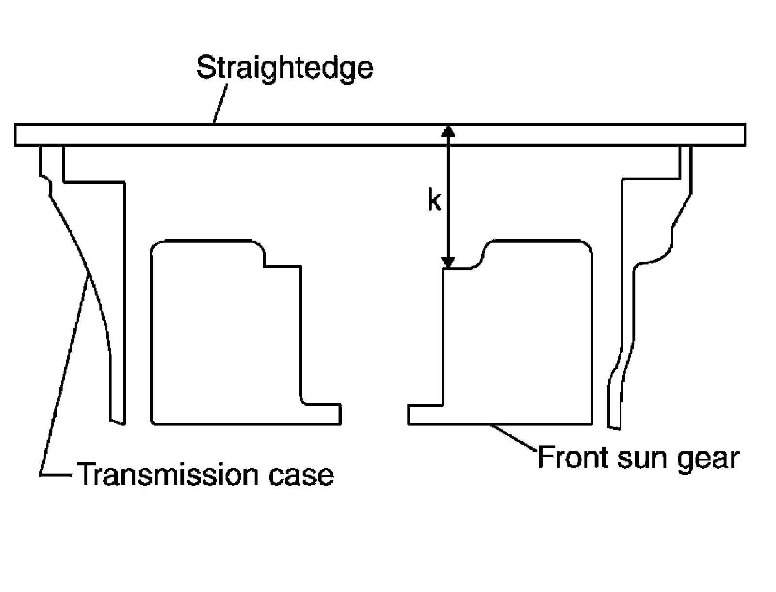 ^ Measure clearance between front sun gear and bearing race for oil pump cover.