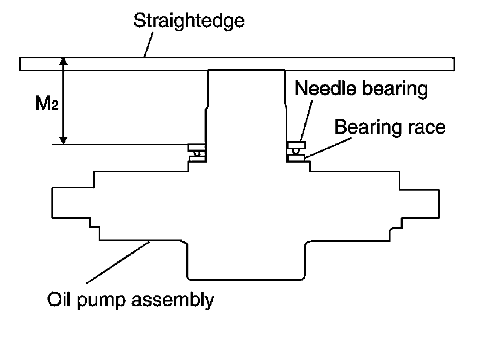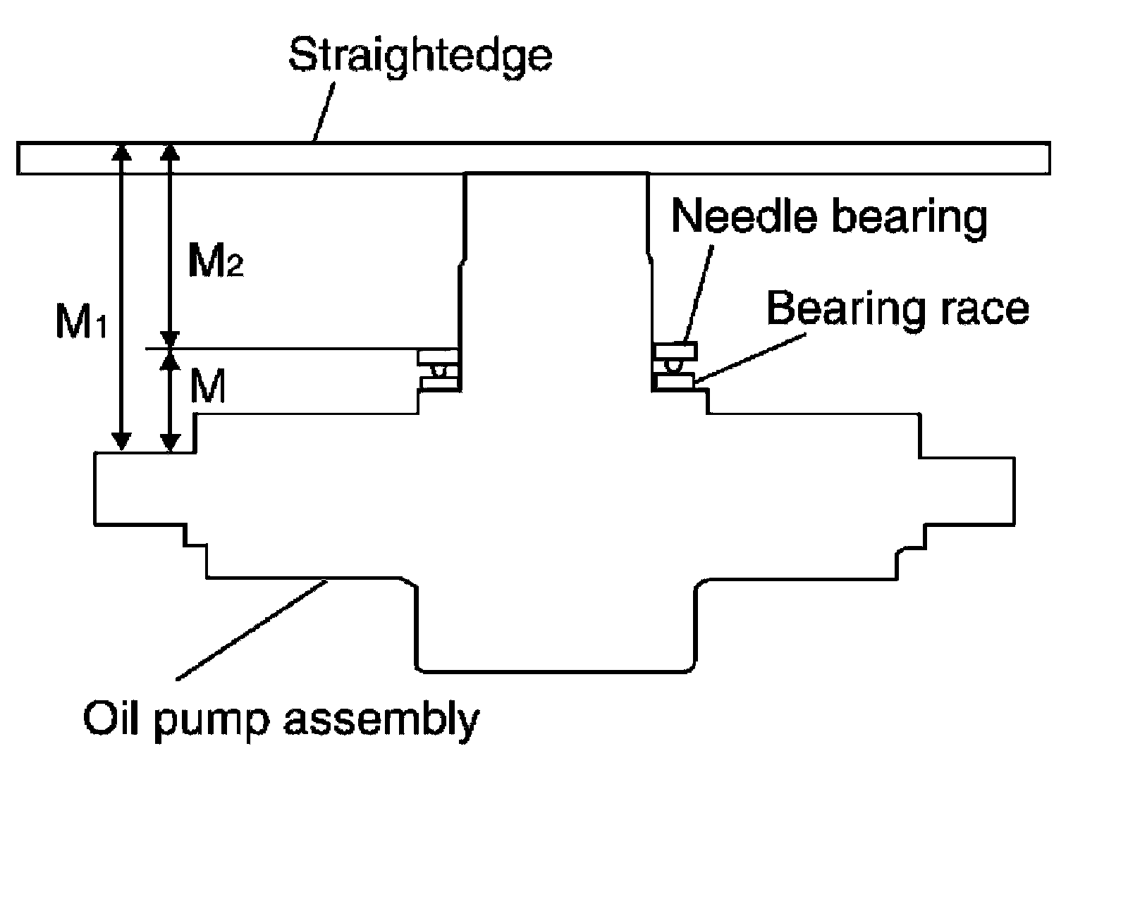 "M": Distance between transmission case fitting surface of oil pump and needle bearing on oil pump.
