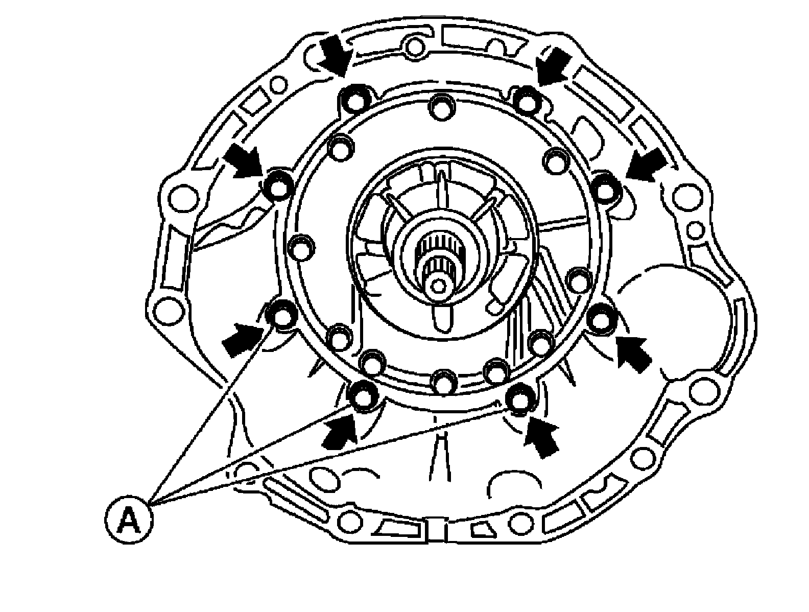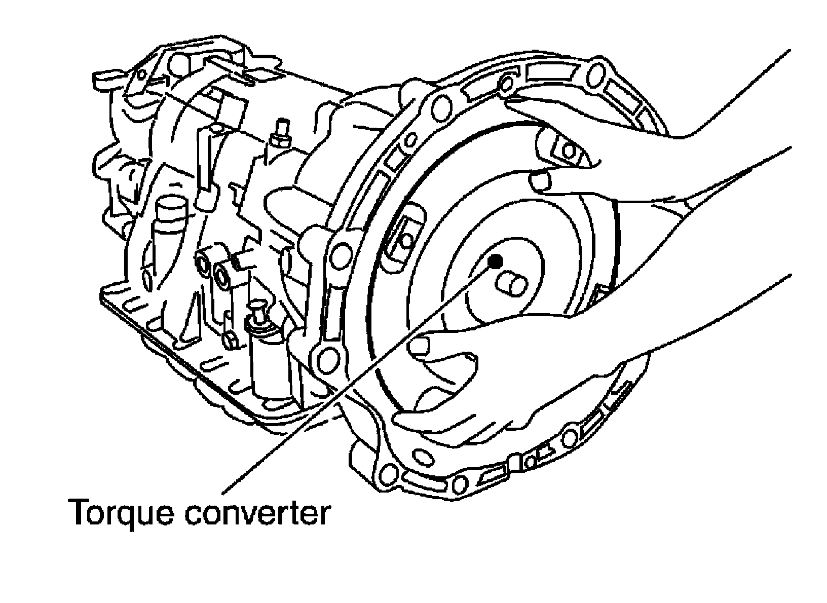 2) Remove torque converter by holding it firmly and turning while pulling straight out.
