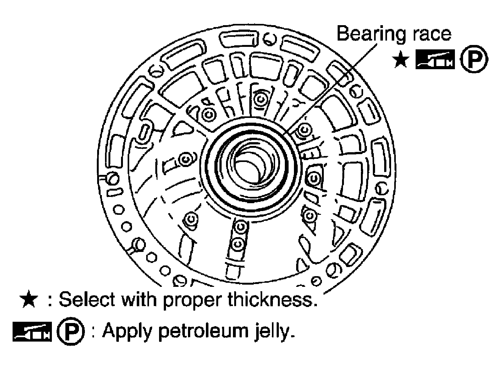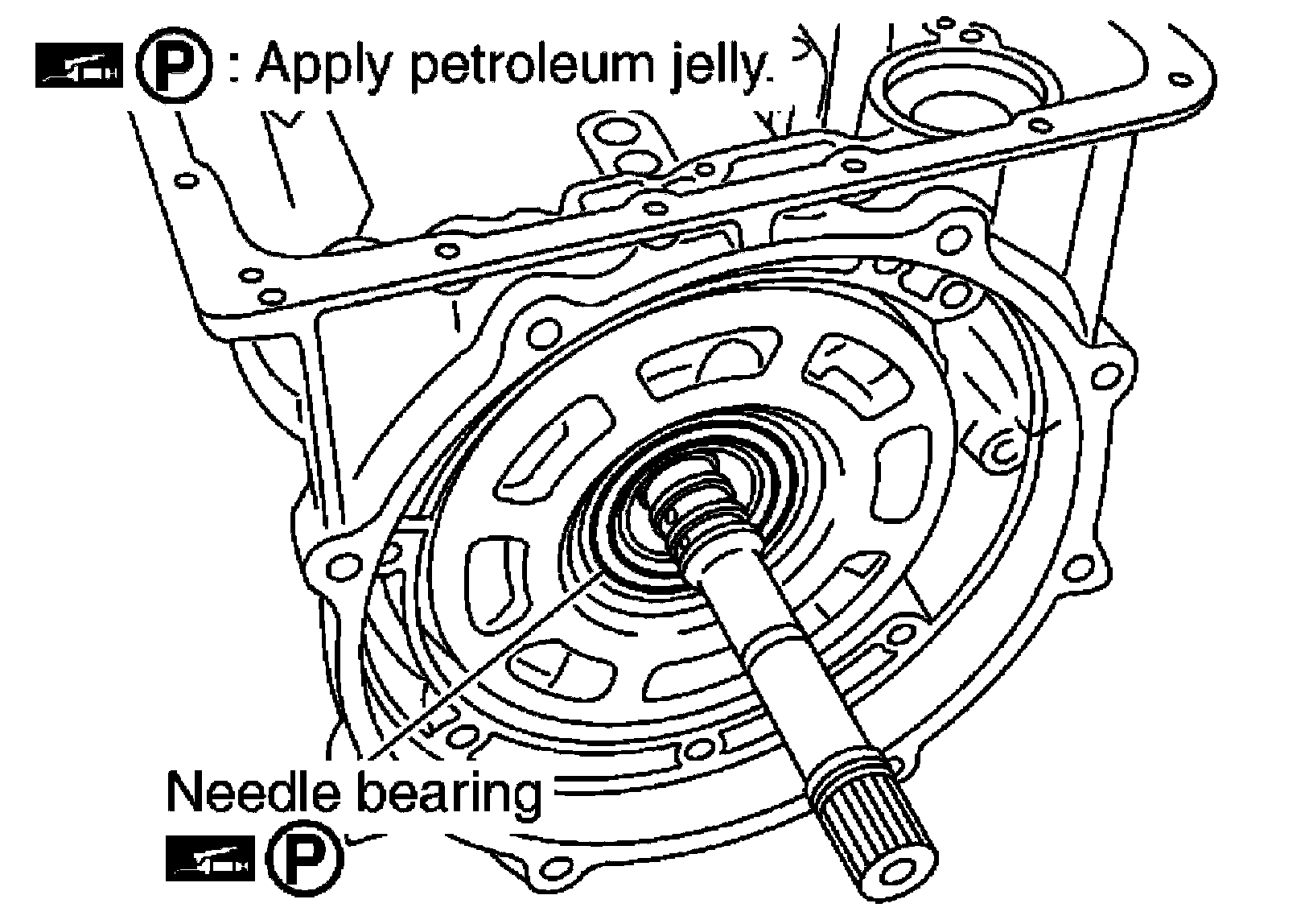 ^ Make sure that bearing race is installed to the oil pump assembly edge surface.