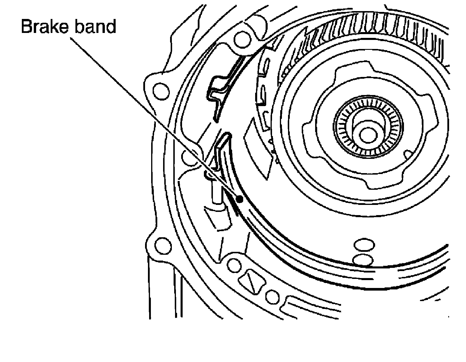 15) Remove brake band from transmission case.